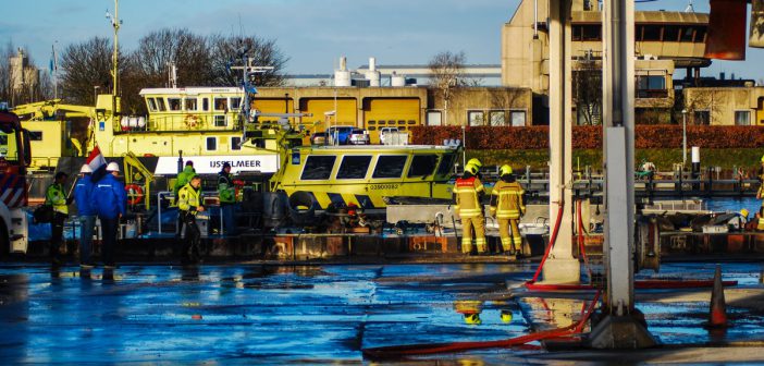 DORDRECHT – Op een binnenvaartschip in Dordrecht heeft maandagochtend 14 januari 2019 een explosie plaatsgevonden. Medewerkers van Rijkswaterstaat waren net aan boord van het schip voor een controle toen het mis ging. In de technische ruimte van het schip vond een explosie plaats waarna er brand ontstond. De brandweer kwam met meerdere blusvoertuigen ter plaatse aan de ‘s-Gravendeelsedijk om de brand te blussen. De brand was daarop snel onder controle. Een politiehelikopter heeft boven de brand gevlogen om overzichtsbeelden te maken.