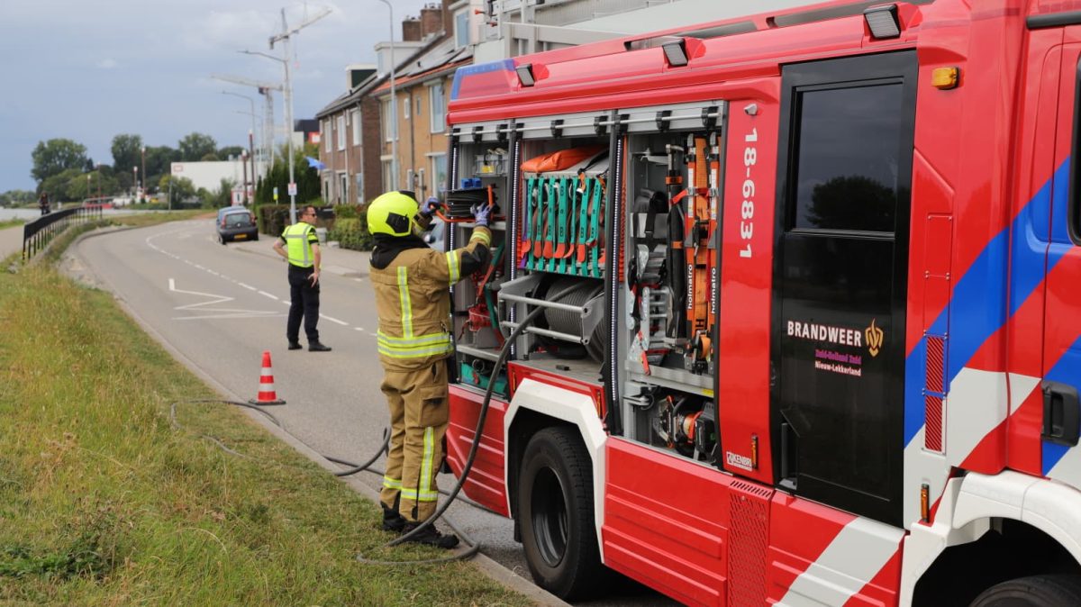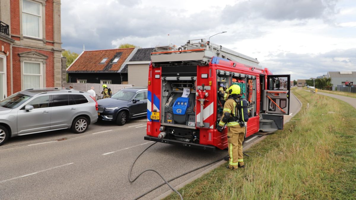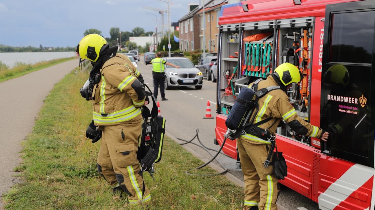 ALBLASSERDAM – De brandweer van Nieuw-Lekkerland is vrijdagmiddag 22 augustus 2025 rond etenstijd met spoed uitgerukt naar de West-Kinderdijk in Alblasserdam voor een melding van een woningbrand. Bij de meldkamer was berekend dat de Nieuw-Lekkerlanders sneller op het adres zouden zijn dan de vrijwilligers van de Alblasserdamse brandweer. Bij aankomst bleek dat er brand was ontstaan in een oven. De bewoners stonden veilig buiten. De brandweer ging naar binnen met een brandslang en een blusdeken. De woning is na afloop door de brandweer geventileerd. Foto’s: Timon Bragt.