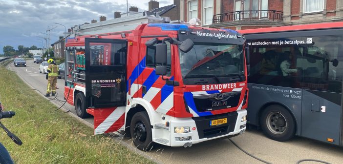ALBLASSERDAM – De brandweer van Nieuw-Lekkerland is vrijdagmiddag 22 augustus 2025 rond etenstijd met spoed uitgerukt naar de West-Kinderdijk in Alblasserdam voor een melding van een woningbrand. Bij de meldkamer was berekend dat de Nieuw-Lekkerlanders sneller op het adres zouden zijn dan de vrijwilligers van de Alblasserdamse brandweer. Bij aankomst bleek dat er brand was ontstaan in een oven. De bewoners stonden veilig buiten. De brandweer ging naar binnen met een brandslang en een blusdeken. De woning is na afloop door de brandweer geventileerd. Foto’s: Timon Bragt.