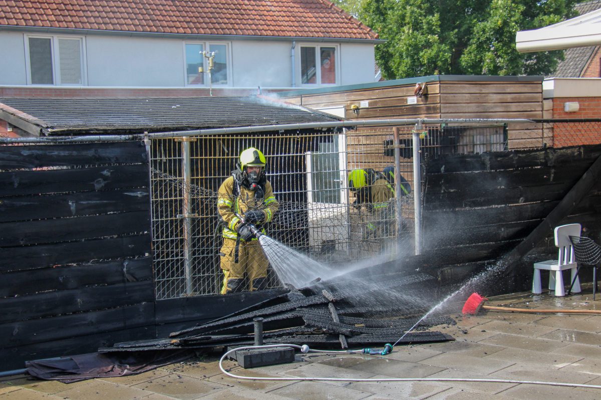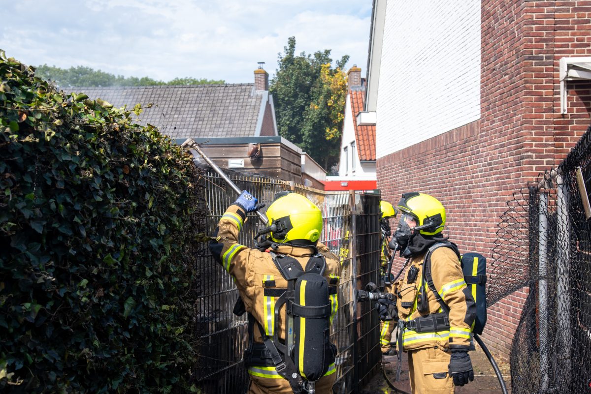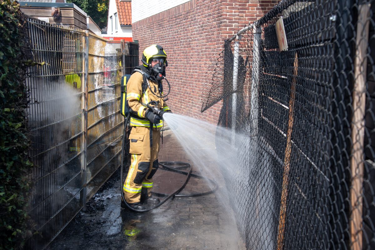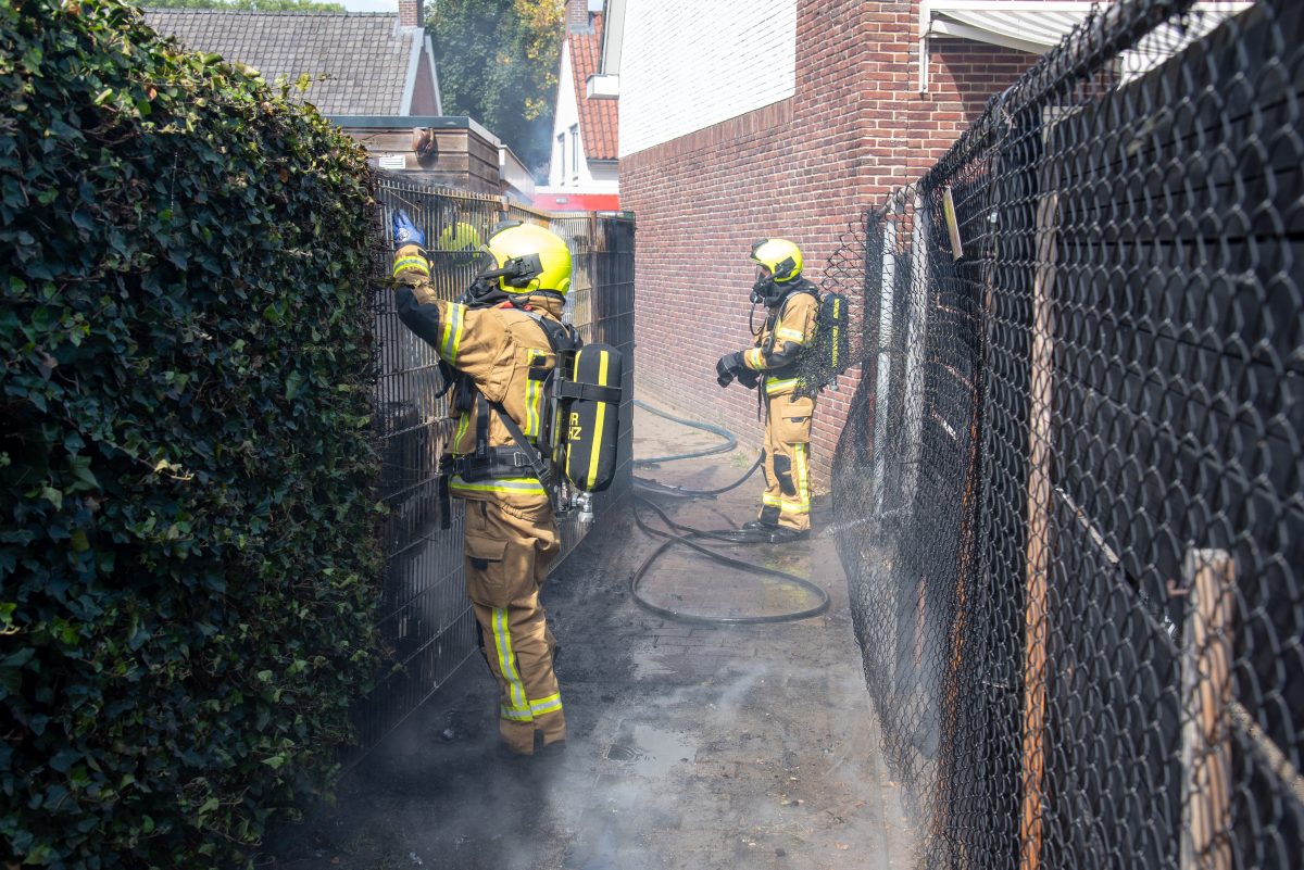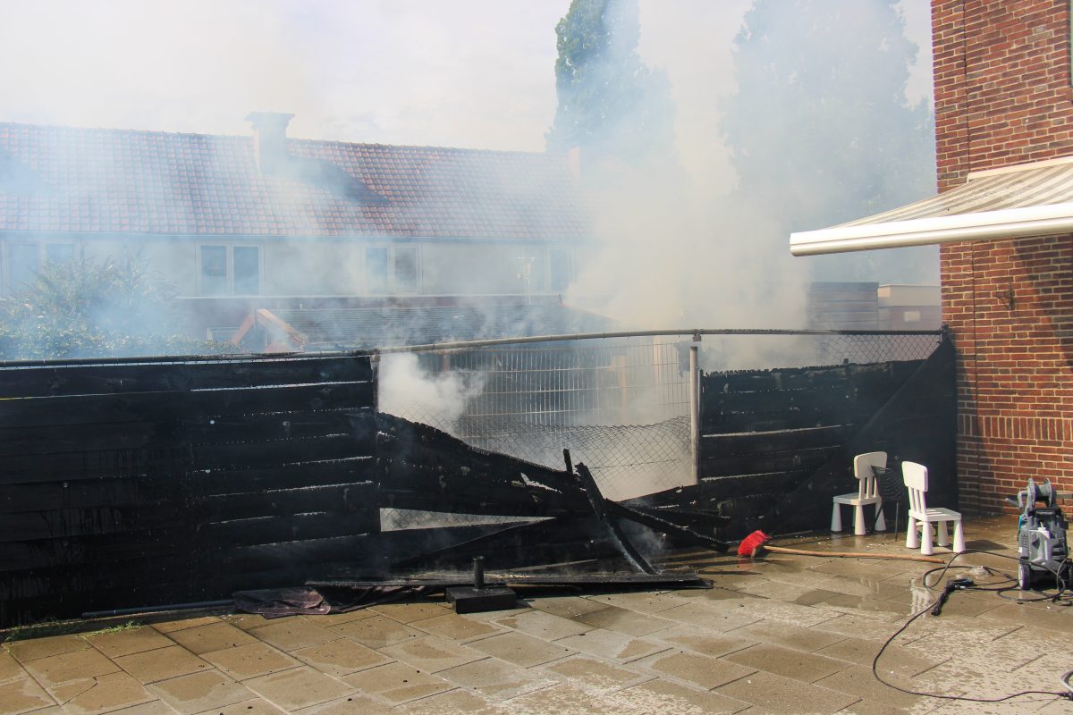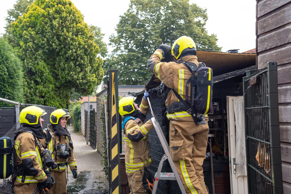 De gealarmeerde brandweer kwam met spoed ter plaatse en bluste de brand verder. Een deel van de dakrand van de schuur moest door de brandweer gesloopt worden om het vuur te doven. Bij de brand kwam veel rook vrij. De bewoner met brandwonden is ter plaatse door ambulancepersoneel nagekeken. De schuur en ook een schutting aan de andere kant van de brandgang zijn door de brand zwaar beschadigd.