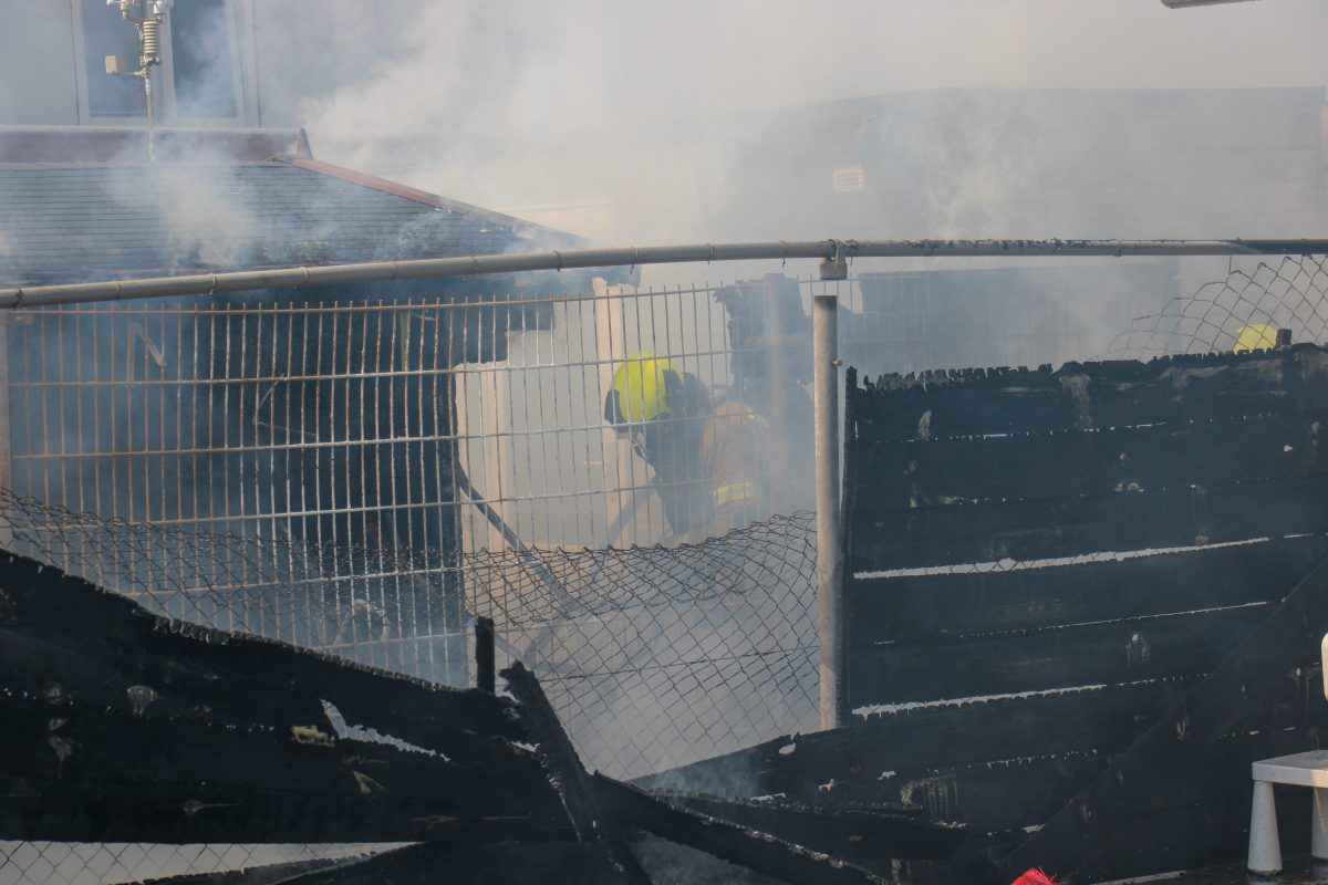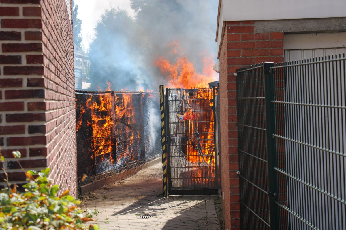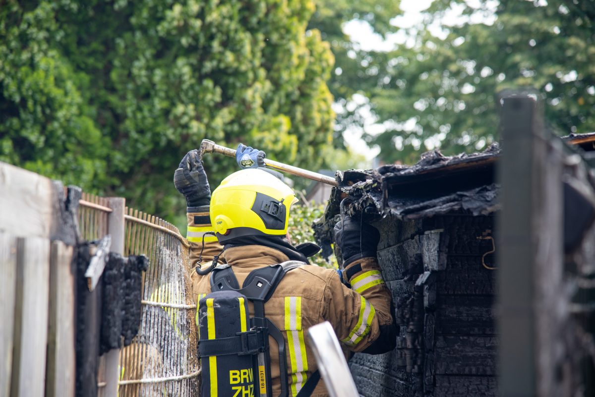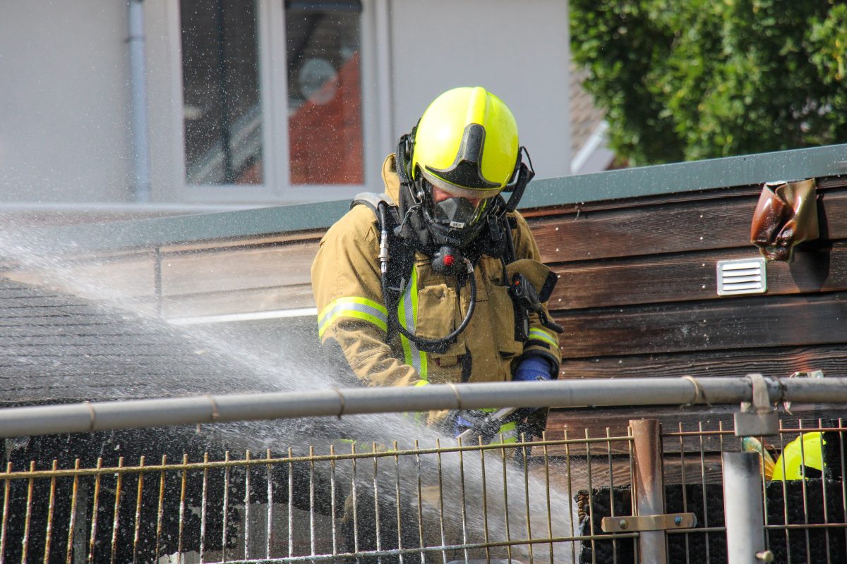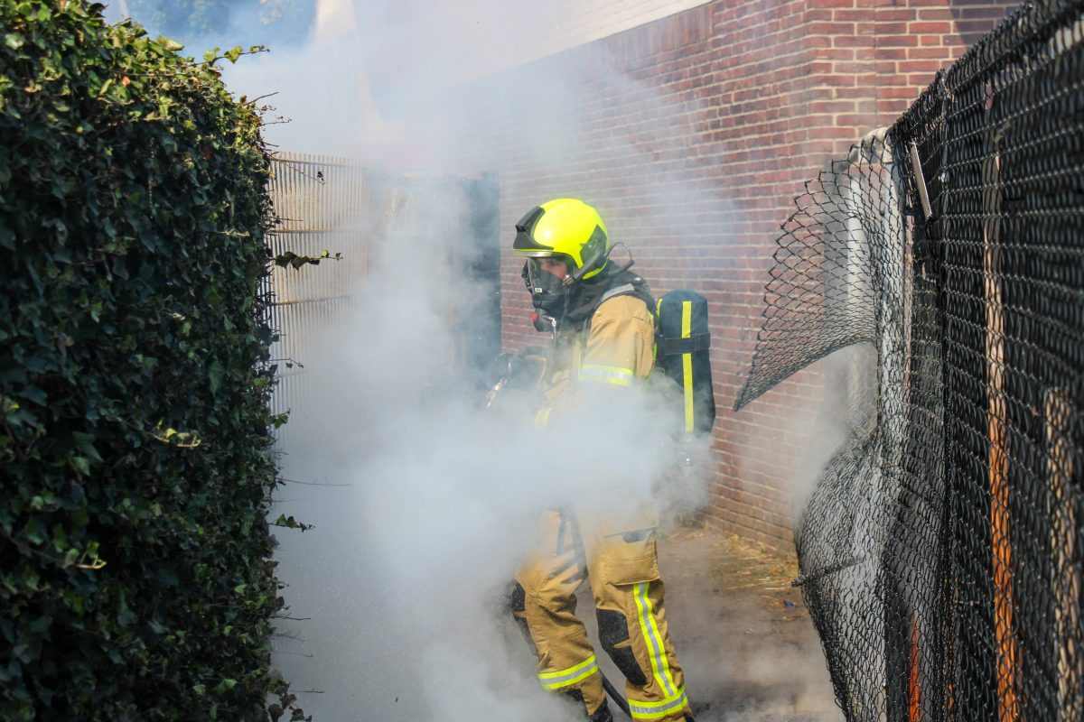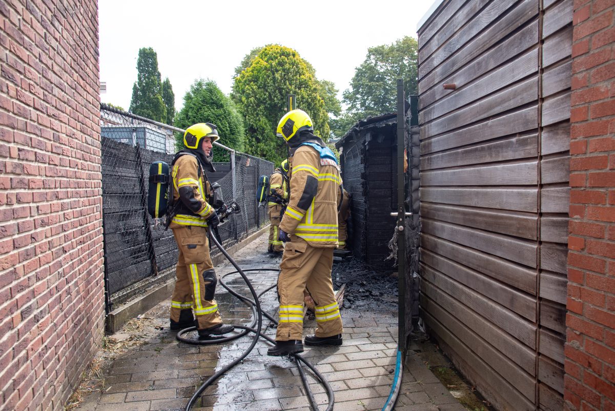 De gealarmeerde brandweer kwam met spoed ter plaatse en bluste de brand verder. Een deel van de dakrand van de schuur moest door de brandweer gesloopt worden om het vuur te doven. Bij de brand kwam veel rook vrij. De bewoner met brandwonden is ter plaatse door ambulancepersoneel nagekeken. De schuur en ook een schutting aan de andere kant van de brandgang zijn door de brand zwaar beschadigd.