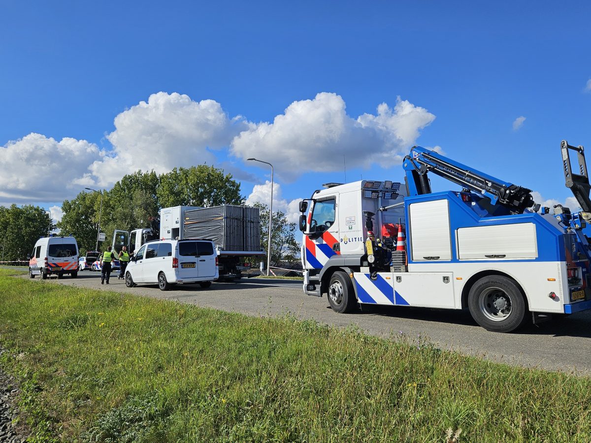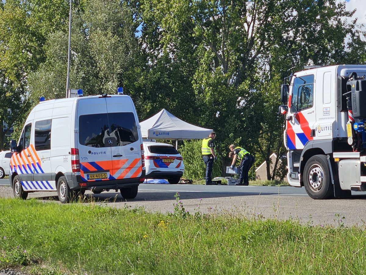 De politie heeft de Lindtsedijk volledig afgesloten tussen de Noordweg en de Merwedeweg om uitgebreid onderzoek te doen naar de toedracht van het ongeval.