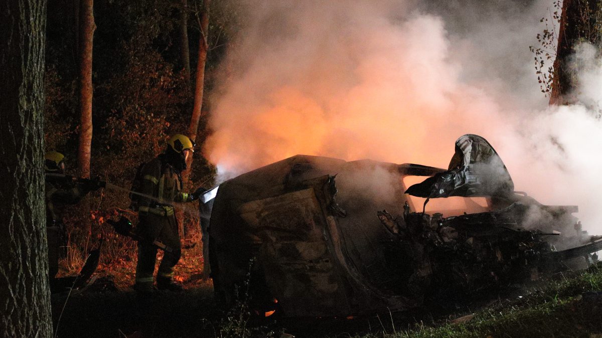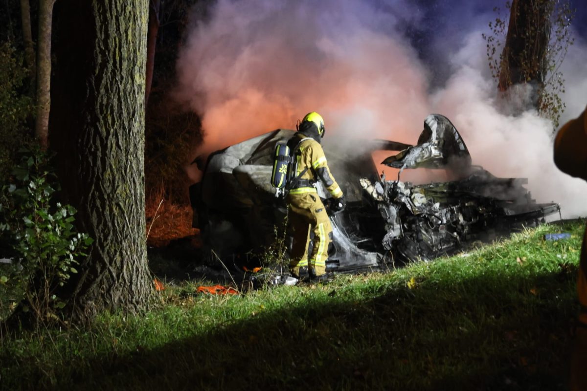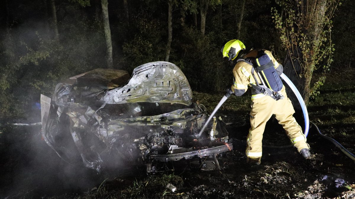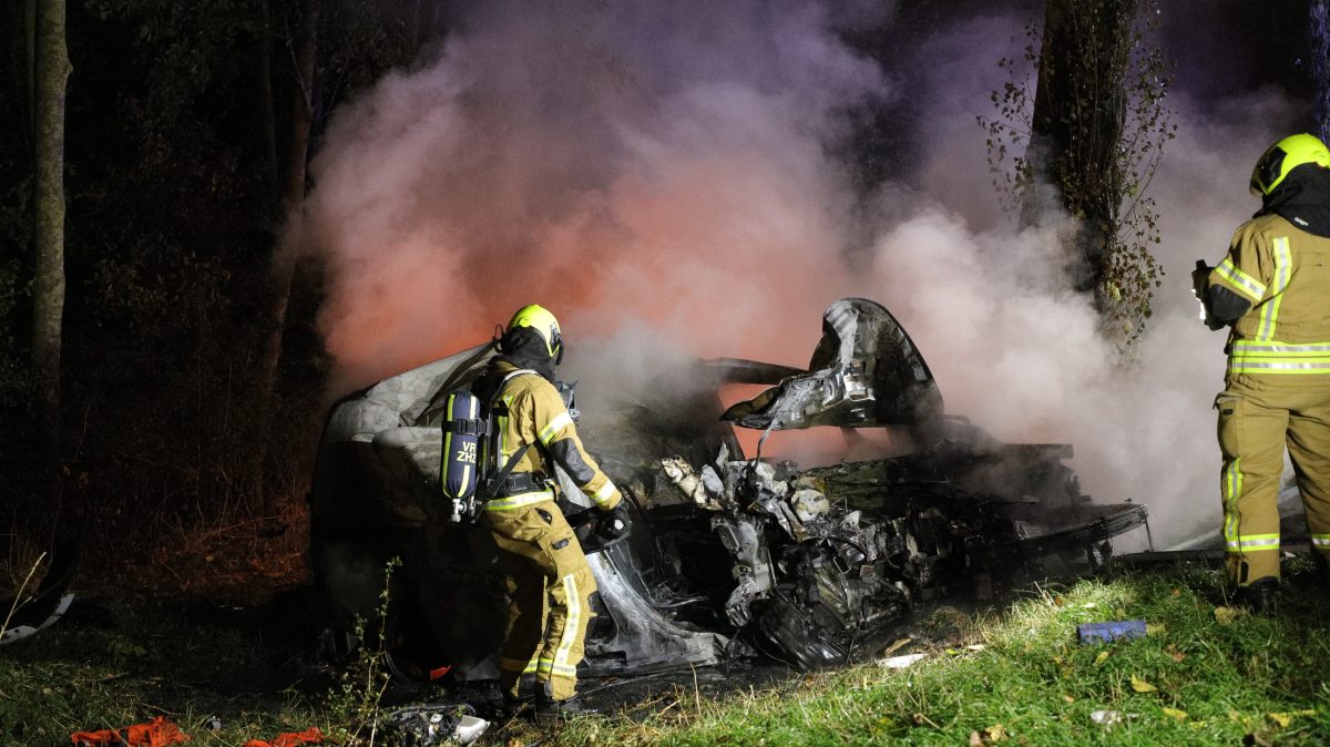 WIJNGAARDEN – In de nacht van maandag 29 september op dinsdag 30 september 2025 is rond 01:00 een bedrijfsbusje volledig uitgebrand na een ongeval op de N214 bij Wijngaarden.