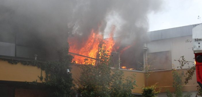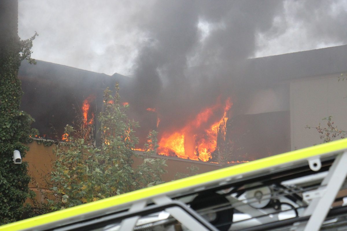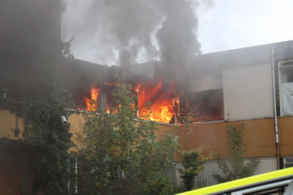 Update: er is opgeschaald naar zeer grote brand. Ook de politiehelikopter cirkelt boven de brand.