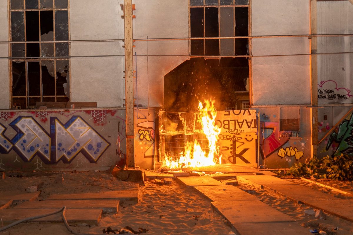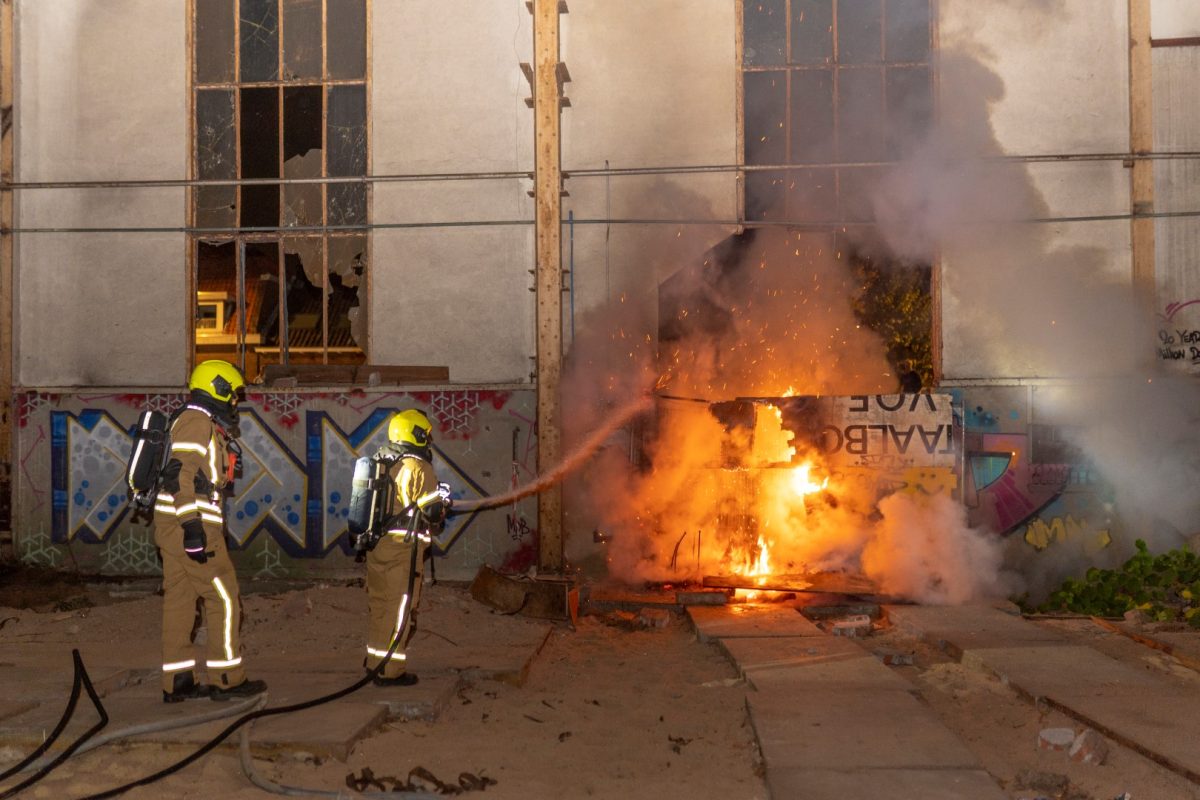ALBLASSERDAM – De politie en de brandweer zijn woensdagavond 22 oktober 2025 met spoed uitgerukt naar de oude Merconloods langs de West-Kinderdijk in Alblasserdam. In de loods was voor de zoveelste keer brand gesticht. In de eerste melding kreeg de politie via de meldkamer door dat het een uitslaande woningbrand betrof. Meerdere auto’s en een politiemotor werden op pad gestuurd. Bij aankomst bleek het echter opnieuw brand in de oude loods te zijn.