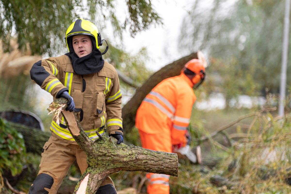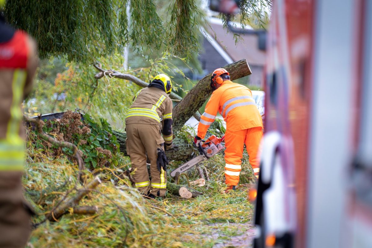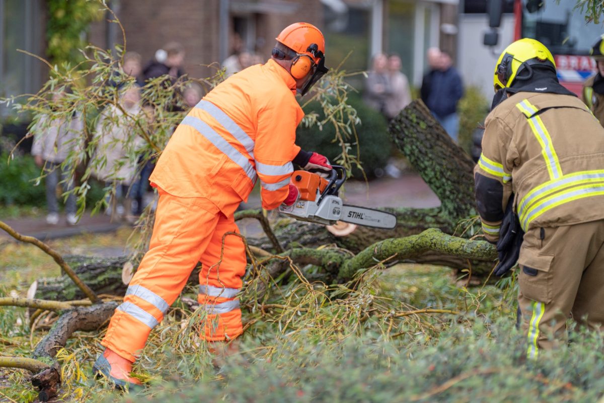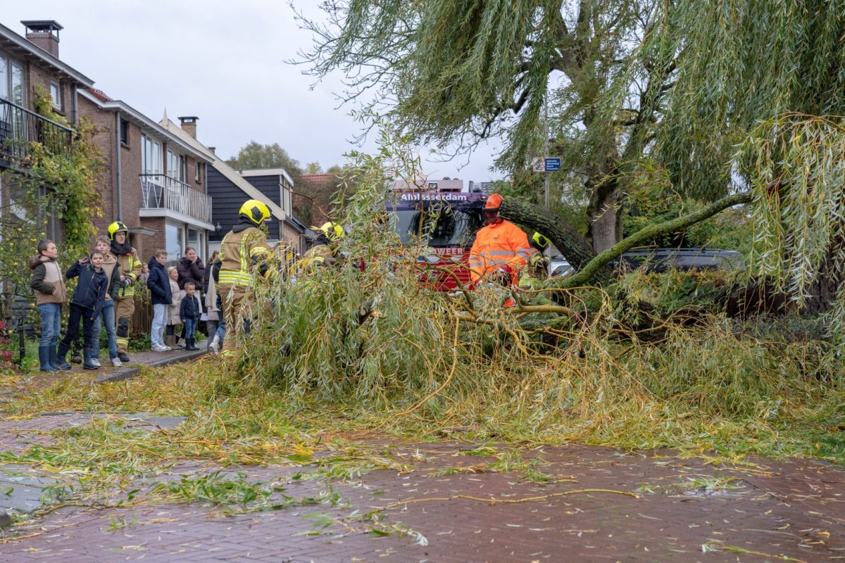 ALBLASSERDAM – Een grote tak is donderdag 23 oktober 2025 tijdens stormachtig weer afgebroken van een boom aan de Polderstraat in Alblasserdam. De tak kwam deels op de weg terecht en raakte daarbij licht een geparkeerd busje. De brandweer kwam ter plaatse om de tak in stukken te zagen en aan de kant te leggen. Tijdens de werkzaamheden was de Polderstraat tijdelijk volledig afgesloten voor het verkeer. Inmiddels is de weg weer vrijgegeven.