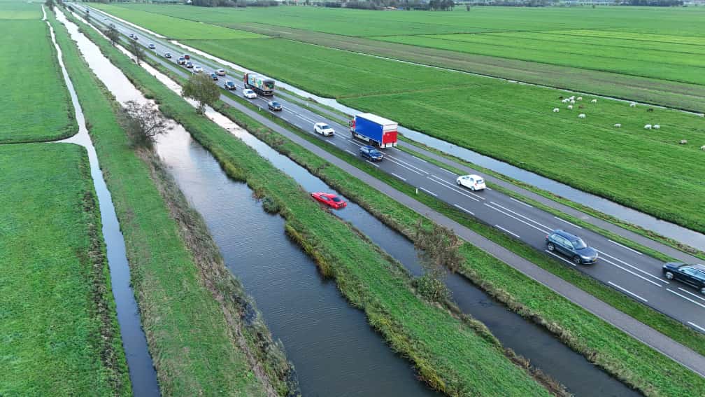 NOORDELOOS – Langs de N214 bij Noordeloos is vrijdag 24 oktober 2025 een auto te water geraakt. De politie en de ambulancedienst kwamen met spoed ter plaatse voor hulp. De bestuurder is nagekeken door het ambulancepersoneel, maar hoefde niet mee naar het ziekenhuis. De te water geraakte Ford Mustang is door een bergingsbedrijf uit het water gehaald en afgevoerd. Hoe de automobilist te water kon raken, is nu nog niet bekend.