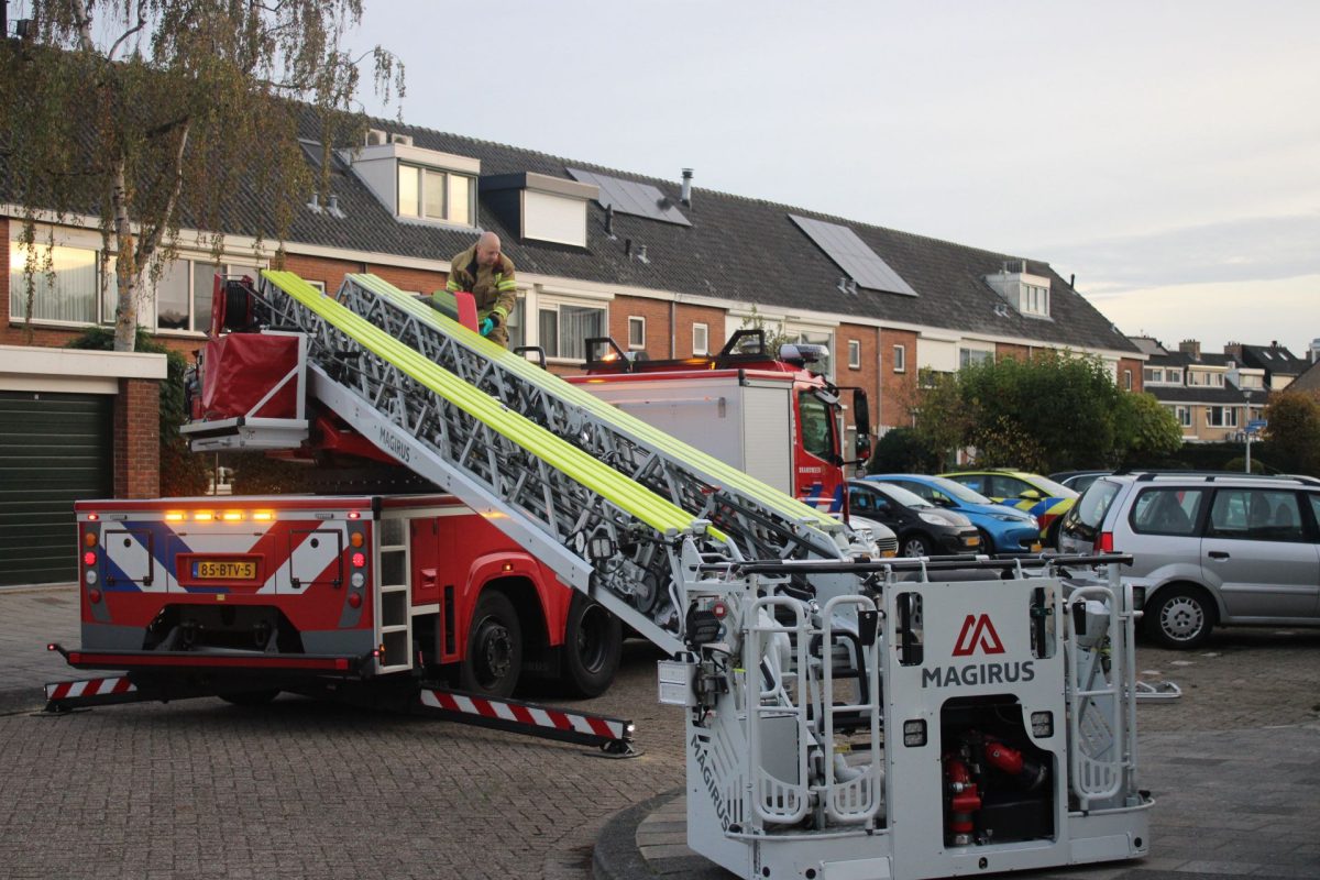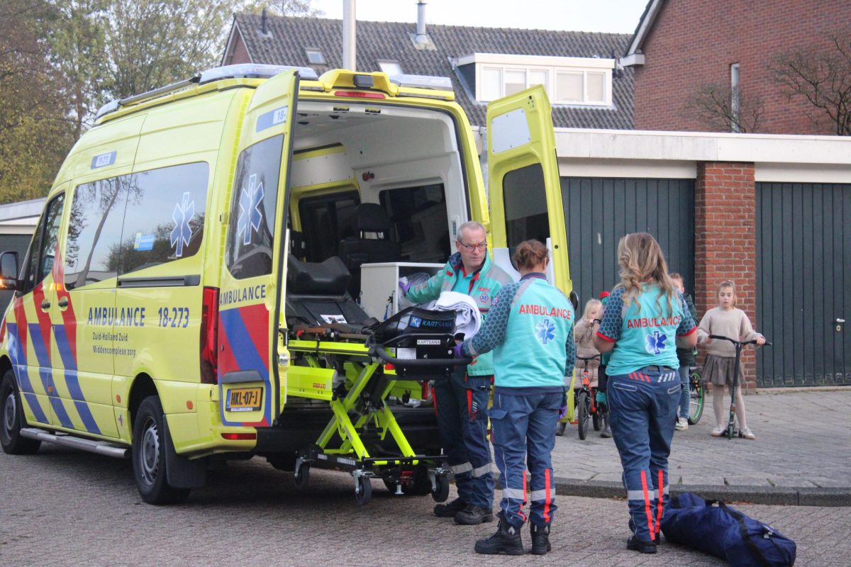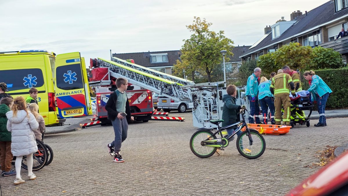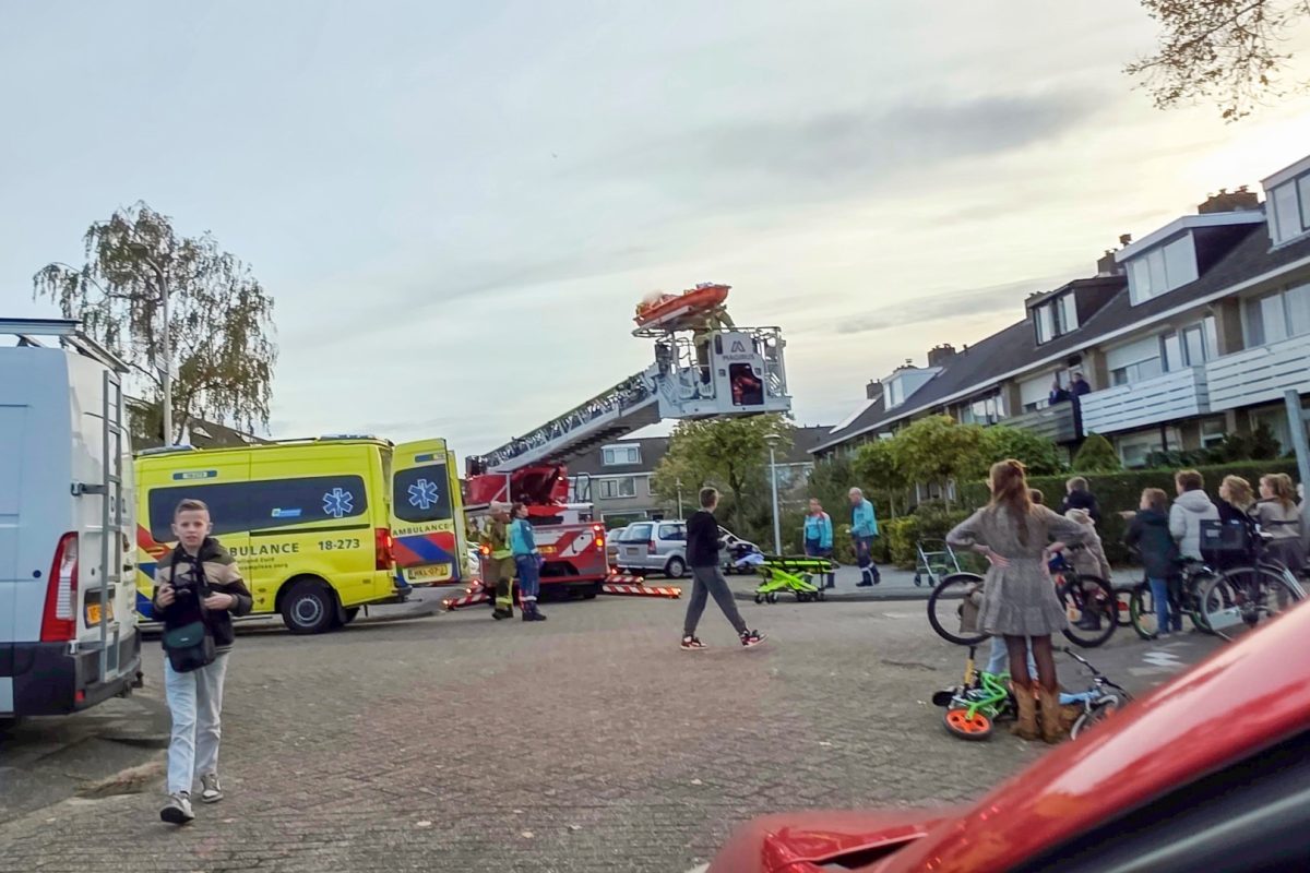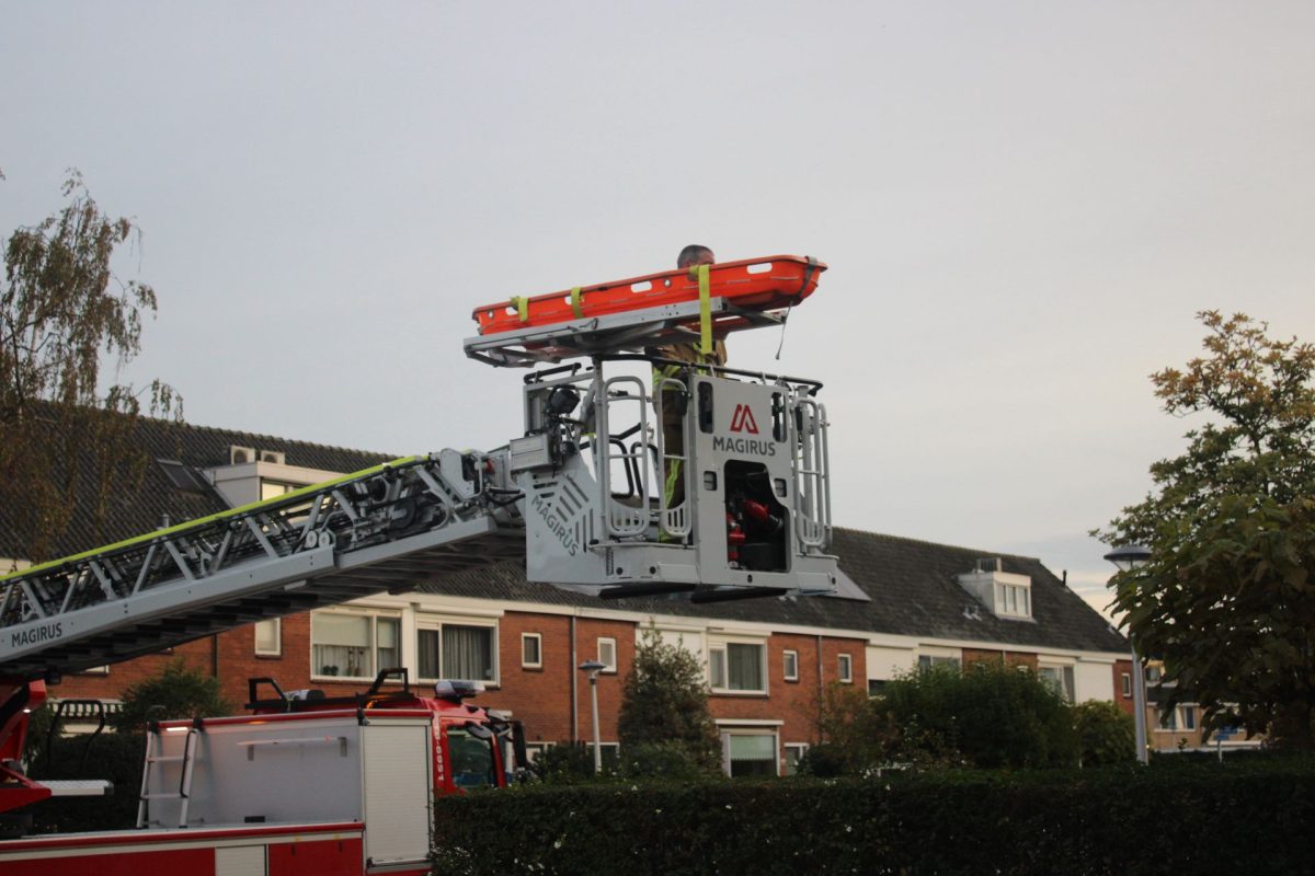 ALBLASSERDAM – De brandweer van Papendrecht heeft donderdag 30 oktober 2025 met behulp van een ladderwagen een man uit een woning gehaald in de Schrijversbuurt in Alblasserdam. Dit deed men in samenwerking met en op verzoek van de ambulancedienst. De man, die volgens een buurtbewoonster in huis was gevallen, is per ambulance meegenomen. De actie trok veel bekijks vanuit de buurt. Foto’s: Timon Bragt.