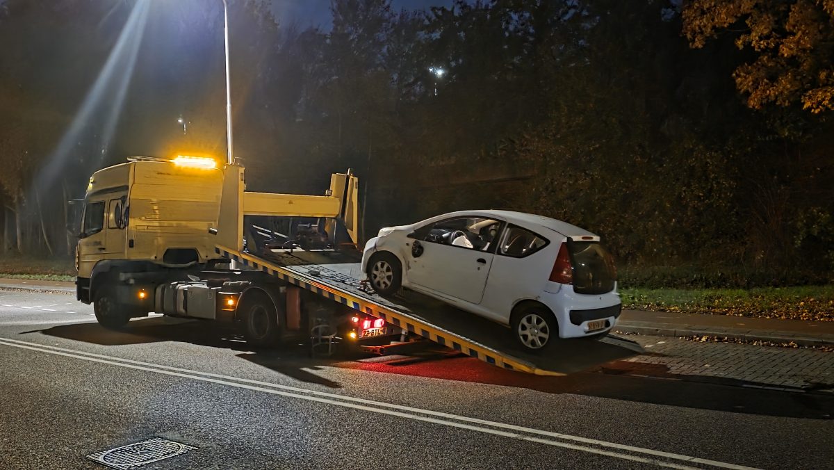 De politie heeft de weg schoongeveegd, waarna een berger het voertuig heeft geborgen. De inzittenden zijn vervolgens door familieleden opgehaald.