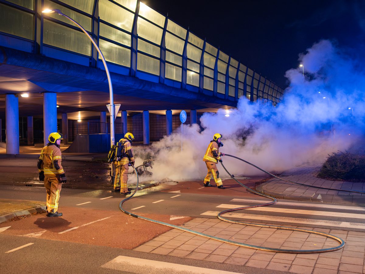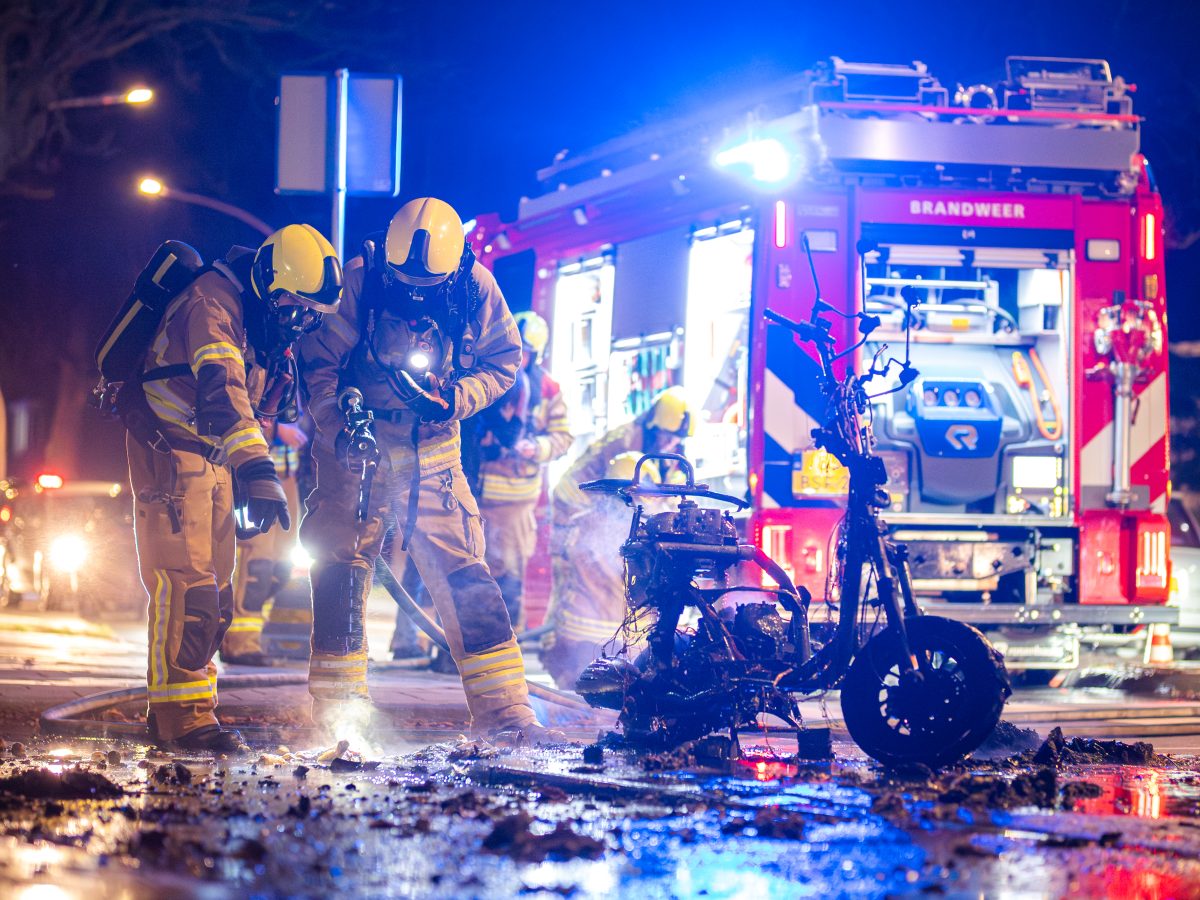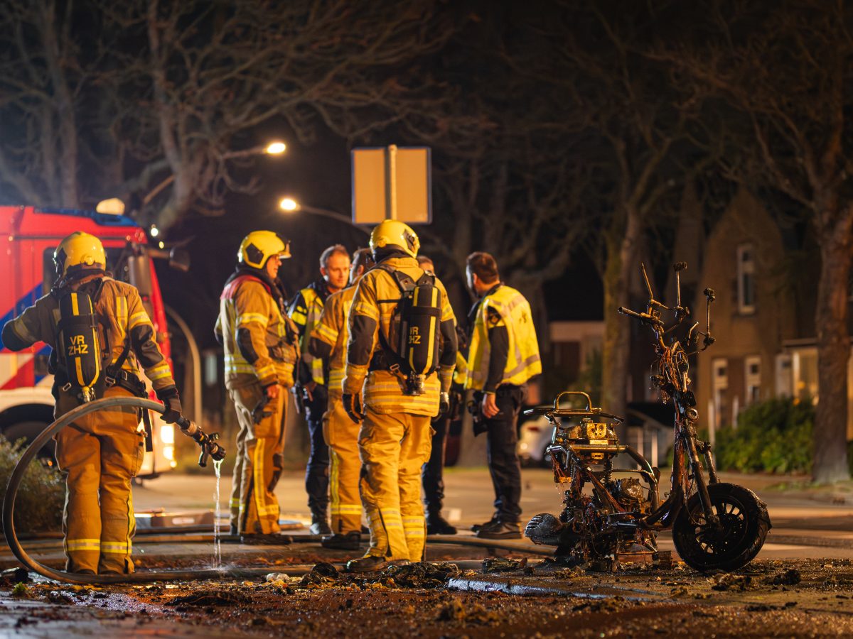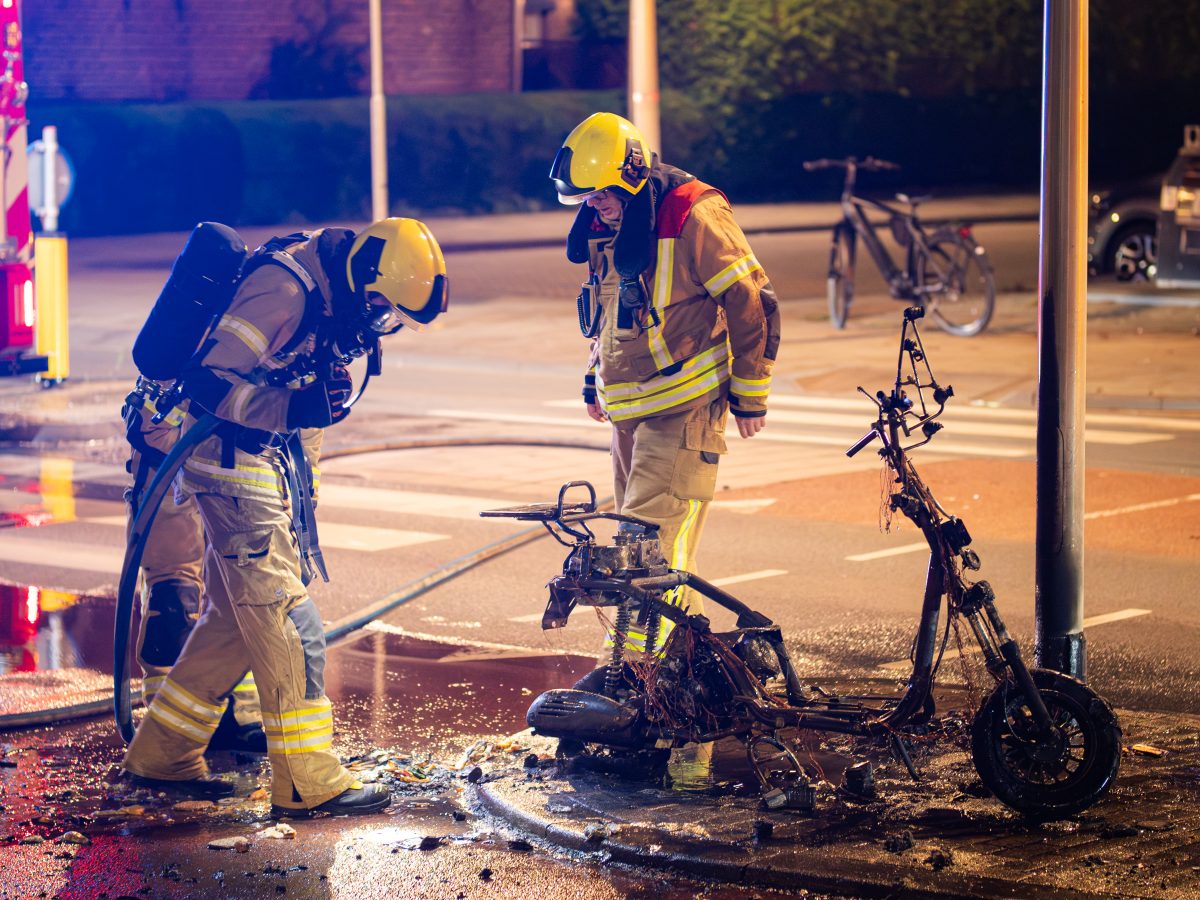 SLIEDRECHT – Op de Stationsweg in Sliedrecht is woensdagavond 5 november 2025 ter hoogte van het viaduct van de A15 een bezorgscooter in brand gevlogen. Rond 21.00 uur werden de hulpdiensten opgeroepen. Bij aankomst van de brandweer stond de scooter volledig in brand. Brandweerlieden hadden het vuur snel onder controle. De bestuurder van de scooter raakte gewond aan zijn handen. De brandweer begon direct met het koelen van de verwondingen, waarna ambulancepersoneel de zorg heeft overgenomen. Hoe de scooter in brand kon vliegen, is niet bekend.