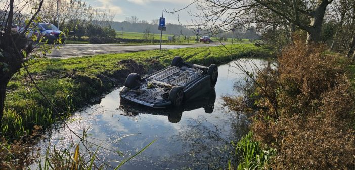 GROOT-AMMERS – Op zaterdagmiddag 22 november 2025 is rond half twee een auto te water geraakt aan de Wilgenweg in Groot-Ammers. Ter hoogte van de Avonturenboerderij Molenwaard raakte de personenauto door een onbekende oorzaak van de weg en belandde op zijn zijkant en vervolgens op zijn kop in de sloot.