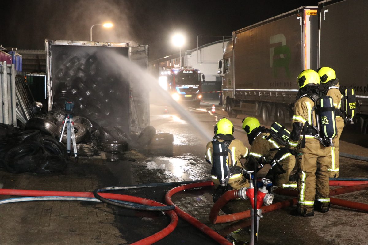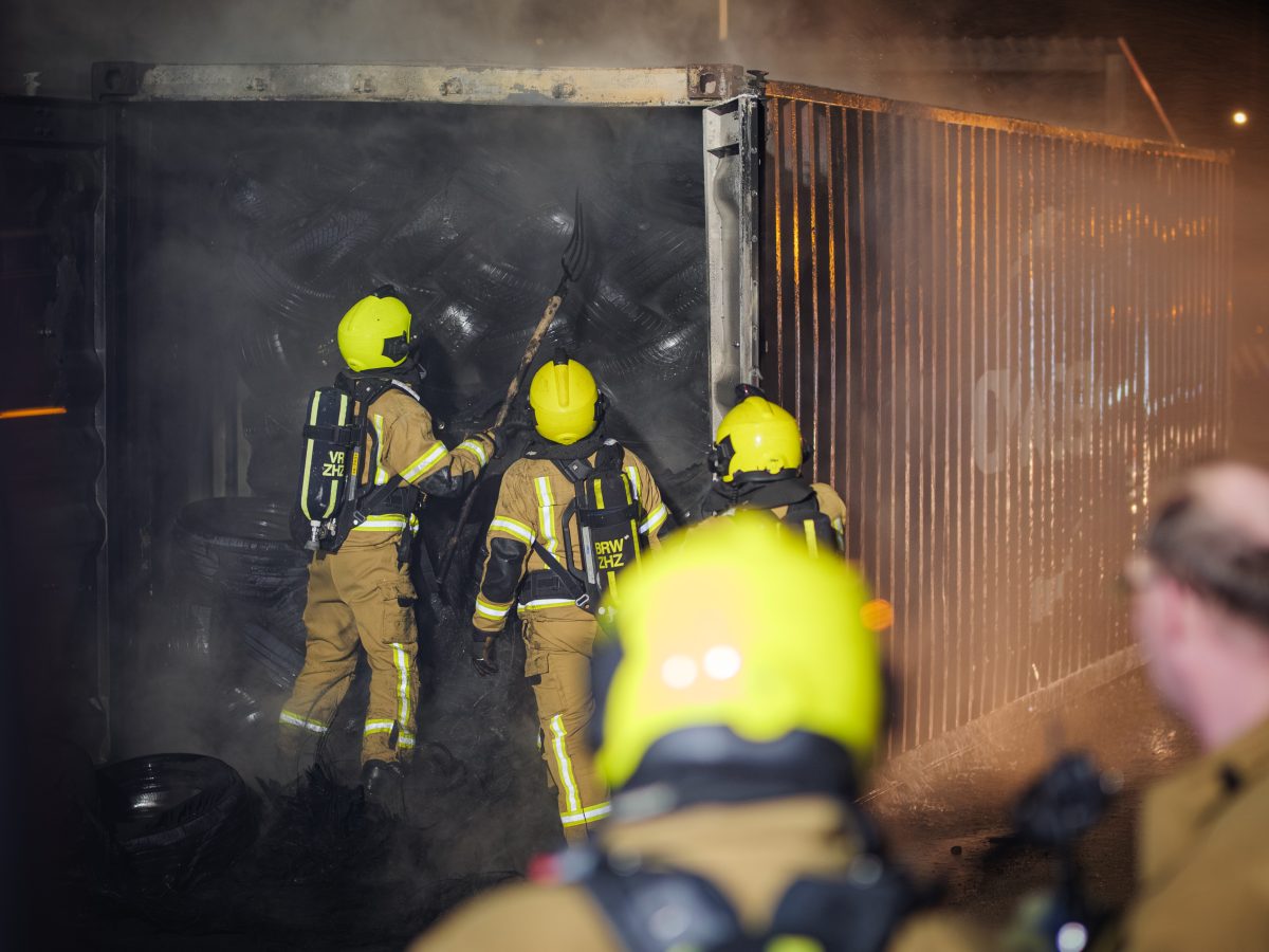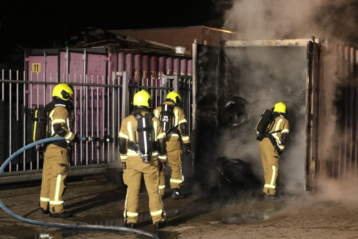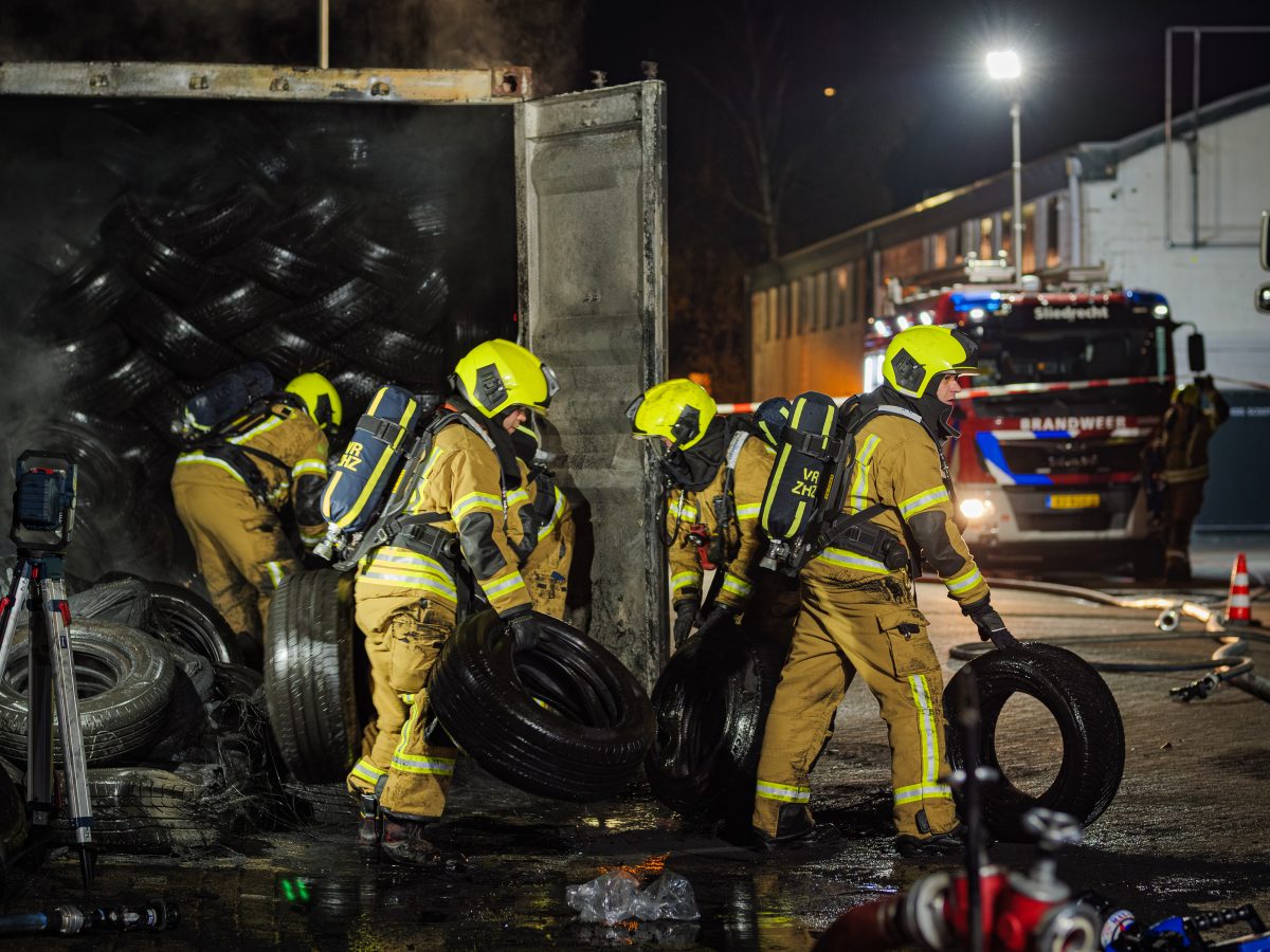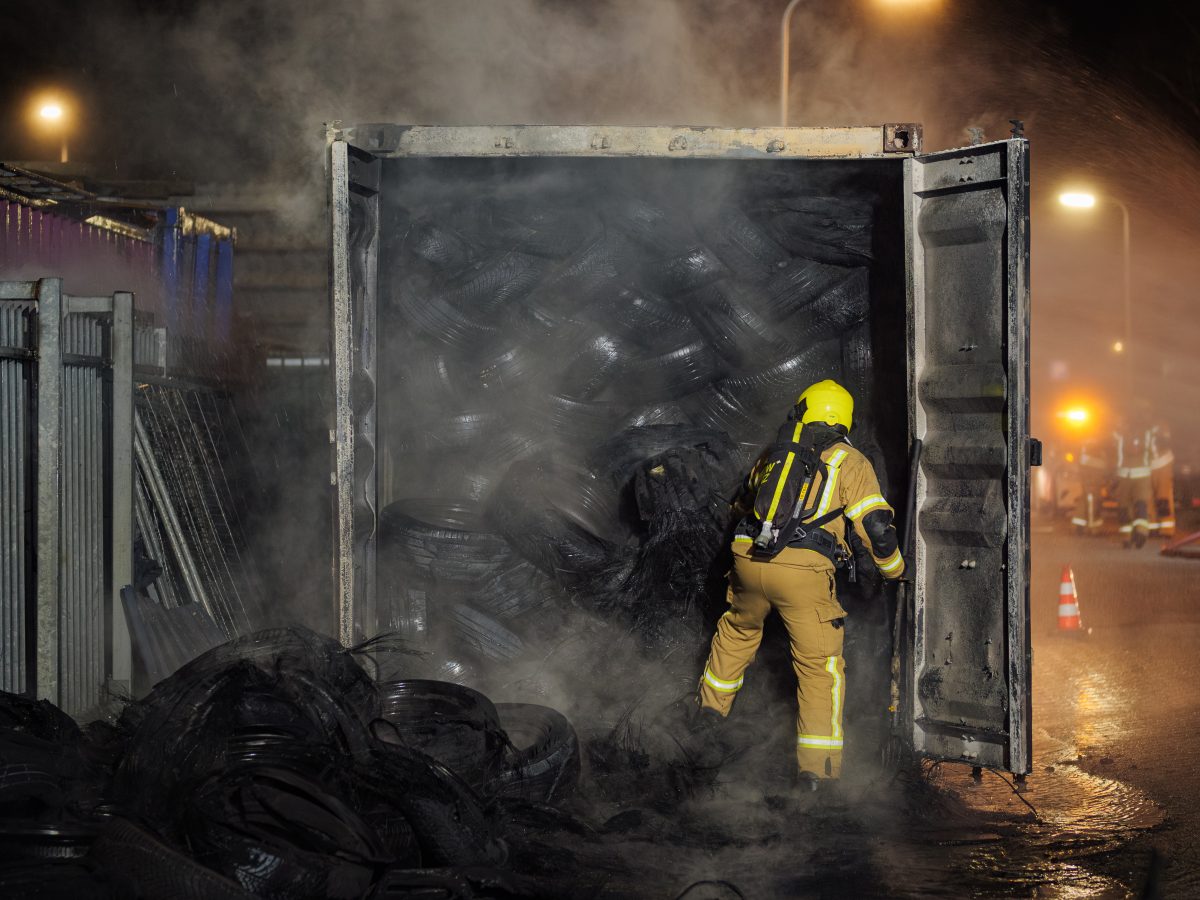 SLIEDRECHT – In een zeecontainer vol met autobanden op de Calandstraat in Sliedrecht is donderdag 4 december 2025 brand ontstaan. De brandweer ging rond 00.30 uur ter plaatse en schaalde op naar middelbrand. De brand bleek een pittige klus, om de brand goed te kunnen blussen moest een deel van de banden uit de container worden gehaald.