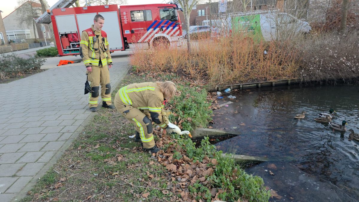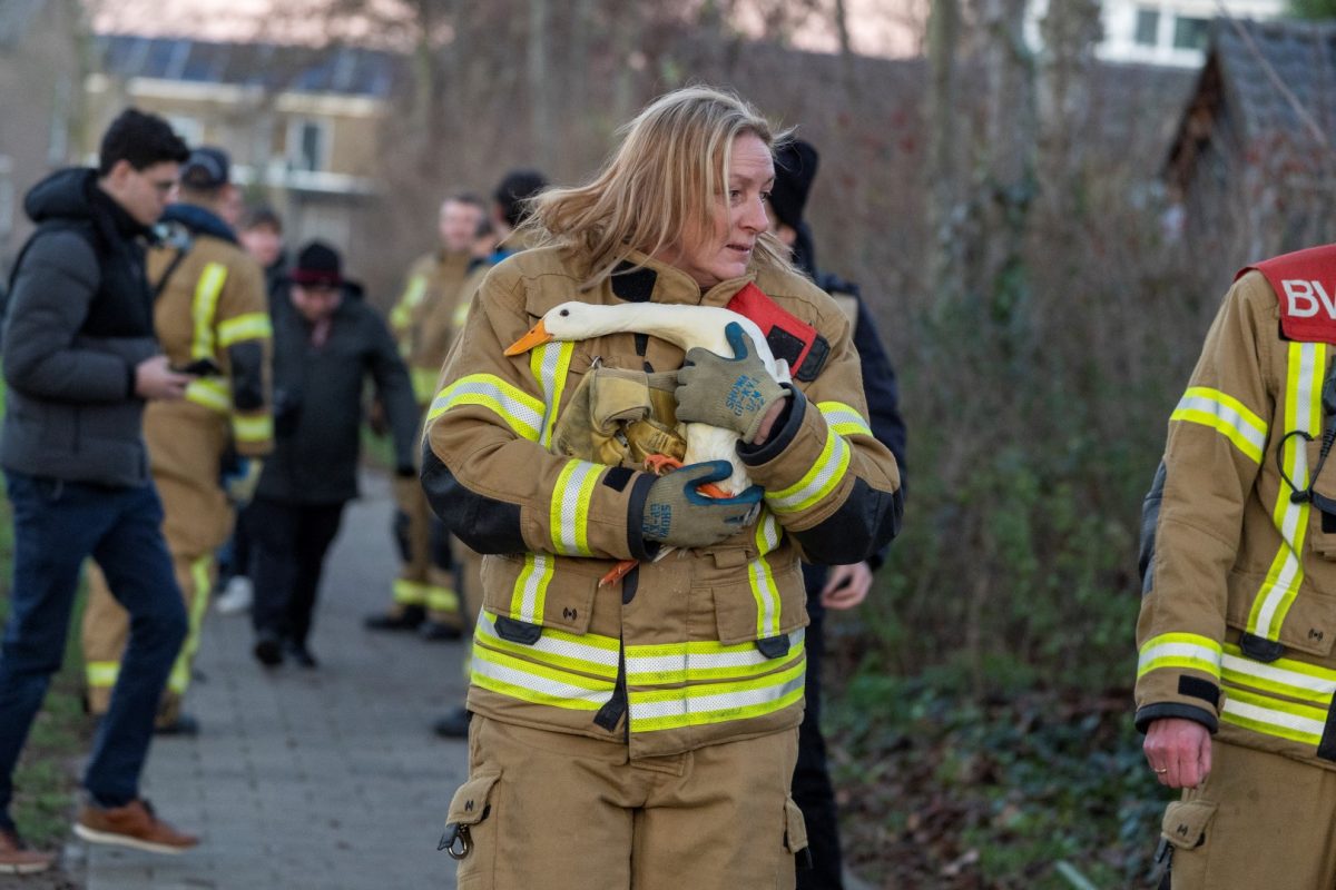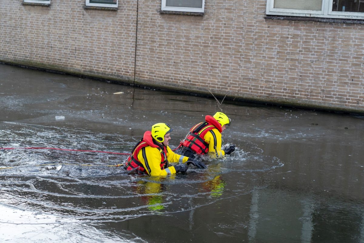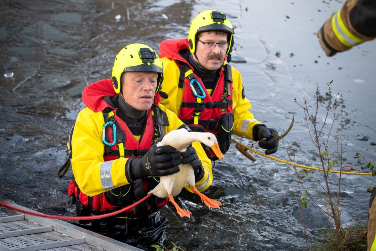ALBLASSERDAM – Hulpdiensten zijn vrijdag 26 december 2025 in actie gekomen voor een loopeend die niet meer van het ijs kon komen bij de Fatimakerk langs de Parallelweg in Alblasserdam. Het dier kon zich niet meer normaal voortbewegen: de poten gleden voortdurend naar links en rechts weg over het gladde ijs, waardoor de eend wijdbeens bleef liggen en niet verder kwam. De dierenambulance kwam als eerste ter plaatse. Tijdens een poging om het dier te bereiken verloor een medewerkster haar evenwicht en belandde in de sloot. Zij wist zelfstandig op de kant te klimmen en heeft zich daarna in de dierenambulance opgewarmd.