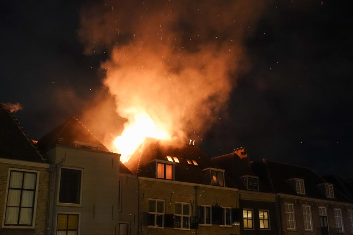 DORDRECHT – In een woning aan de Korte Engelenburgerkade in Dordrecht is woensdagavond 31 december 2025 een grote brand uitgebroken. De vlammen sloegen al snel uit het dak. De brandweer schaalde op naar middelbrand en daarna al snel naar grote brand. Meerdere blusvoertuigen werden ingezet om de brand te blussen. Er wordt onderzoek gedaan naar het ontstaan van de brand.
