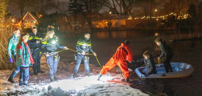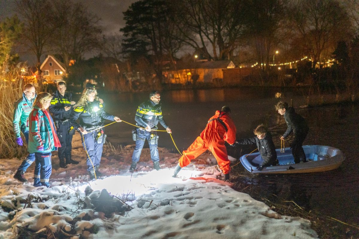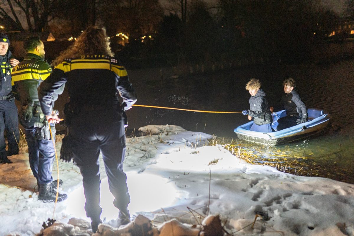 ALBLASSERDAM – Twee jongens van 14 en 15 jaar oud zijn zondagavond 4 januari 2026 midden in het Rijzenwiel in Alblasserdam terechtgekomen met een oude, lekke boot. De tieners gebruikten de boot als slee en gleden vanaf de dijk richting de plas. Dit deden ze meermaals en meestal ging dat goed, totdat zij zo hard van de helling gingen dat de boot over een sloot stuiterde en vervolgens in de grote plas bij de Donkersloot terechtkwam.
