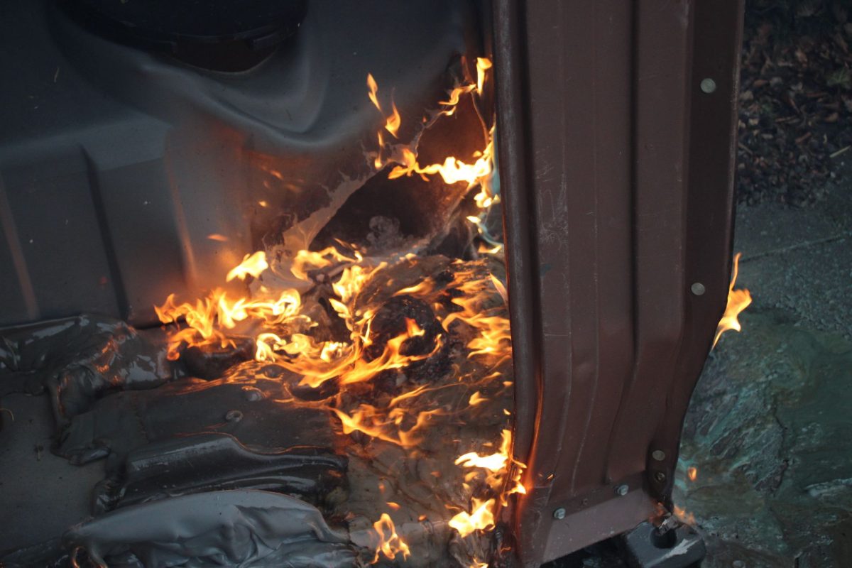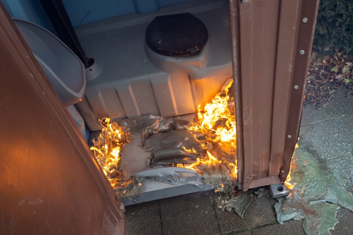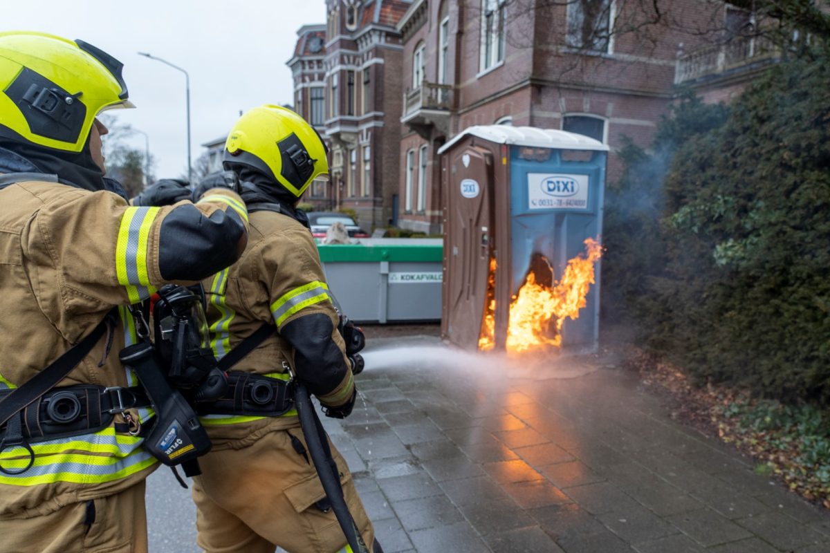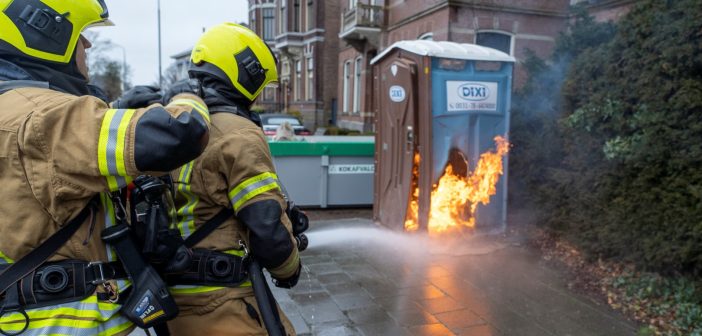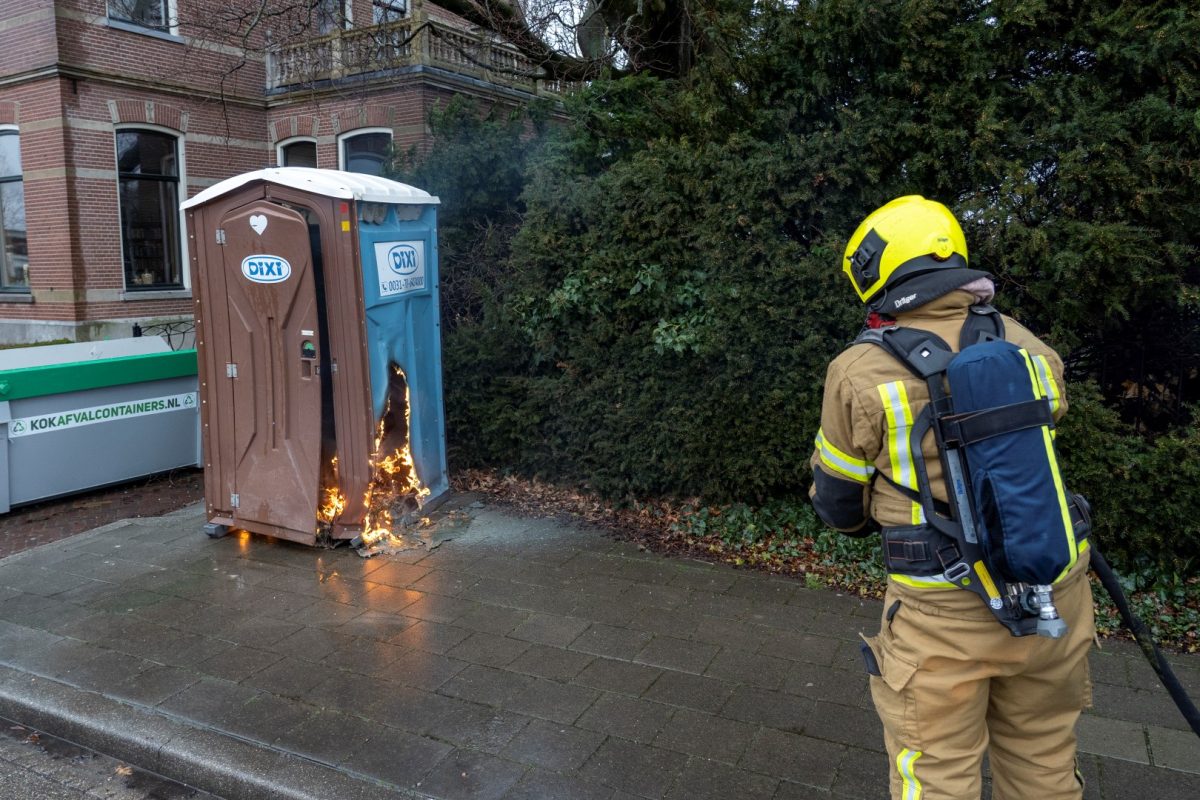 ALBLASSERDAM – Langs het Cortgene in Alblasserdam heeft zondagmiddag 22 februari 2026 een mobiel toilet in brand gestaan. Ondanks de regen, brandde het plastic hokje flink. De brandweer kwam ter plaatse en had het vuur binnen enkele minuten onder controle. Hoe het mobiele toilet is gaan branden, is niet bekend, maar brandstichting ligt voor de hand. De Dixi stond ter hoogte van werkzaamheden bij een woning langs de dijk. Foto’s: Timon Bragt en Peter Stam.