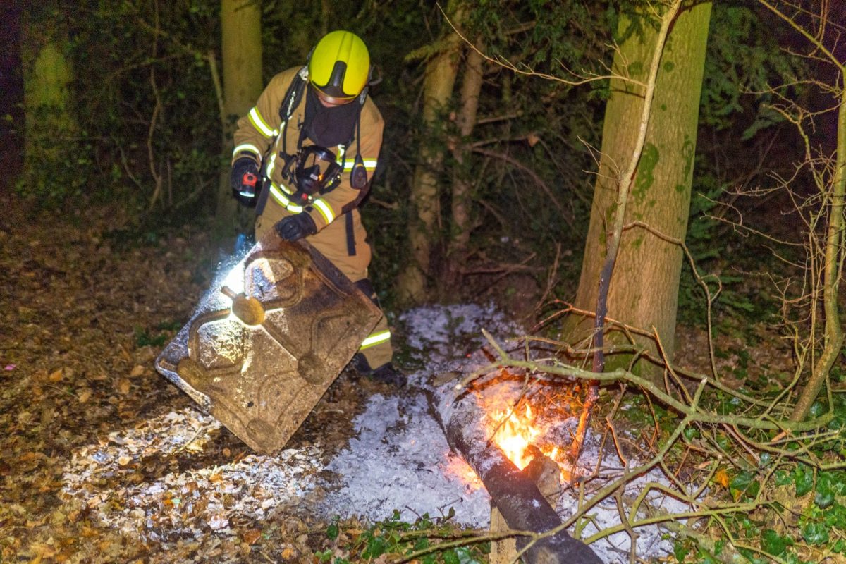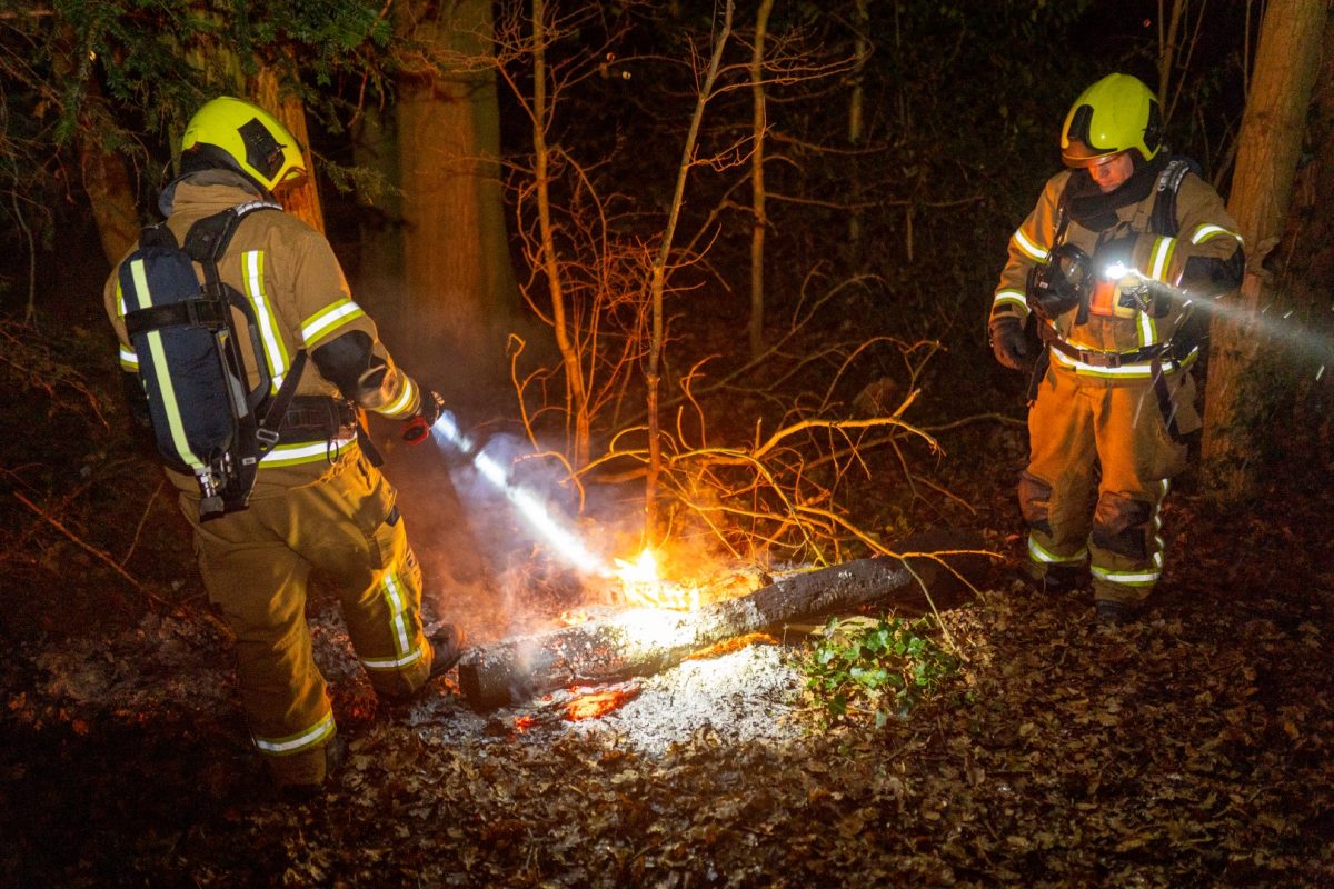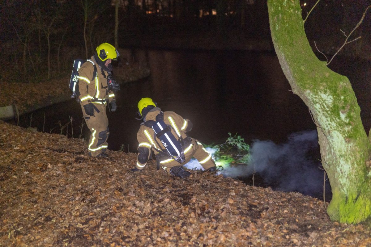 Ter plekke bleken onder meer boomstammen, takken en stukken hout in brand te staan. Een deel van het brandende materiaal werd in het water gegooid om het vuur te doven. De delen die niet in de sloot belandden, zijn met emmers water geblust.