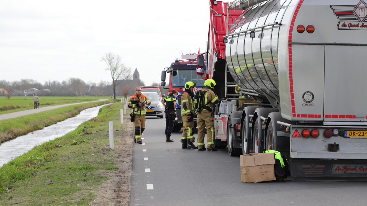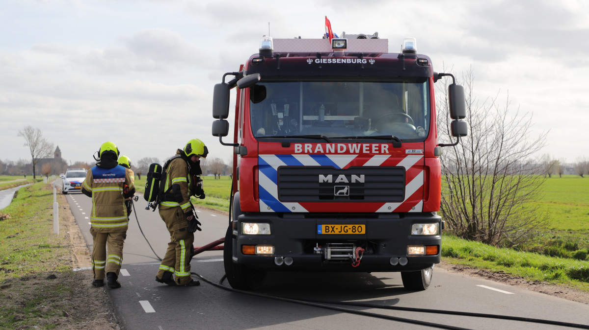 GIESSENBURG – Langs de Damseweg in Giessenburg kwam donderdagmiddag 12 maart 2026 rook vrij in de motorruimte van een vrachtwagen na het losschieten van een kabel nabij de turbo. Door de rook werd gedacht dat de vrachtwagen in brand zou staan, waarop de brandweer werd gealarmeerd. De brandweer, die niet veel later met spoed ter plaatse kwam, heeft geen blussing hoeven doen maar heeft wel een uitgebreide nacontrole uitgevoerd. De Damseweg is enige tijd afgesloten geweest voor verkeer. De vrachtwagen, die niet verder kon rijden, wordt ter plaatse gerepareerd.