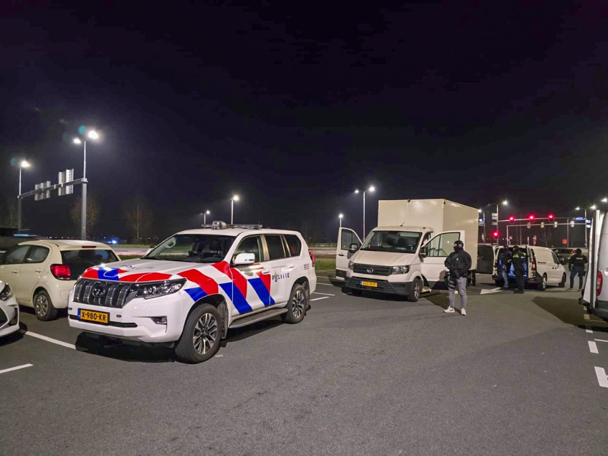 De inzittenden van de bestelbus werden direct aangehouden. De verdachten zijn een 45-jarige man uit Barcelona en een 29-jarige man uit Bilthoven. In hetzelfde onderzoek werden met medewerking van de Dienst Speciale Interventies (DSI) een 44-jarige man uit Dordrecht, een 46-jarige man uit Rotterdam en een 39-jarige man uit Bergen op Zoom opgepakt. Die drie arrestaties vonden plaats in Bergen op Zoom.