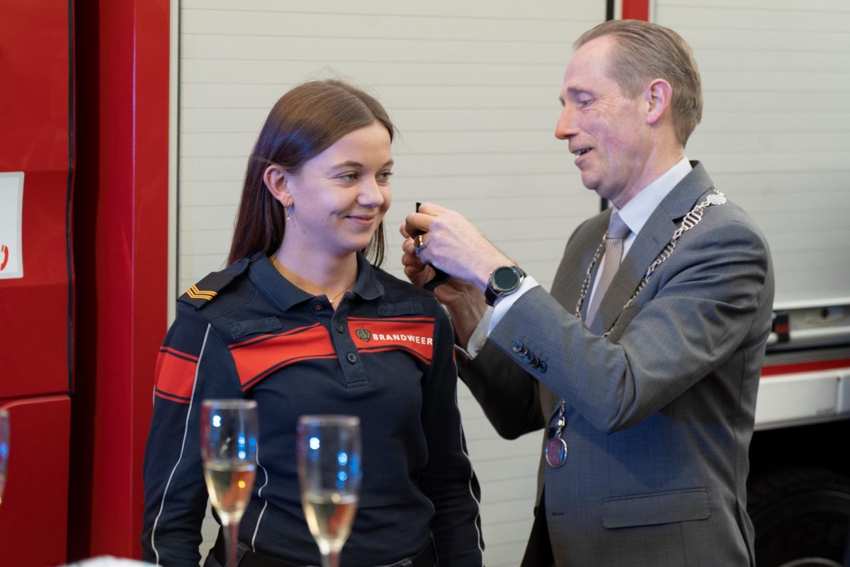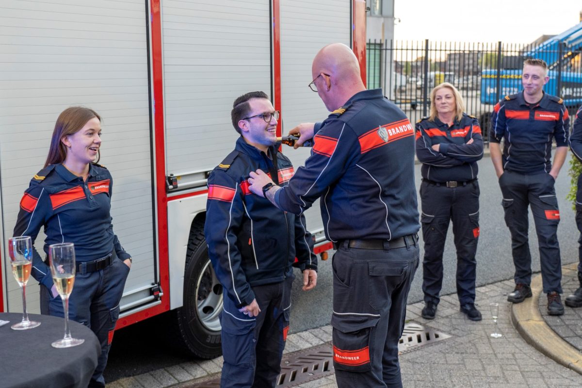 Tijdens dezelfde avond werden ook twee brandweervrijwilligers bevorderd. Lotte en Reinier gingen van aspirant naar manschap, nadat zij alle benodigde examens succesvol hadden afgerond. De bijbehorende epauletten werden door de burgemeester opgespeld.
