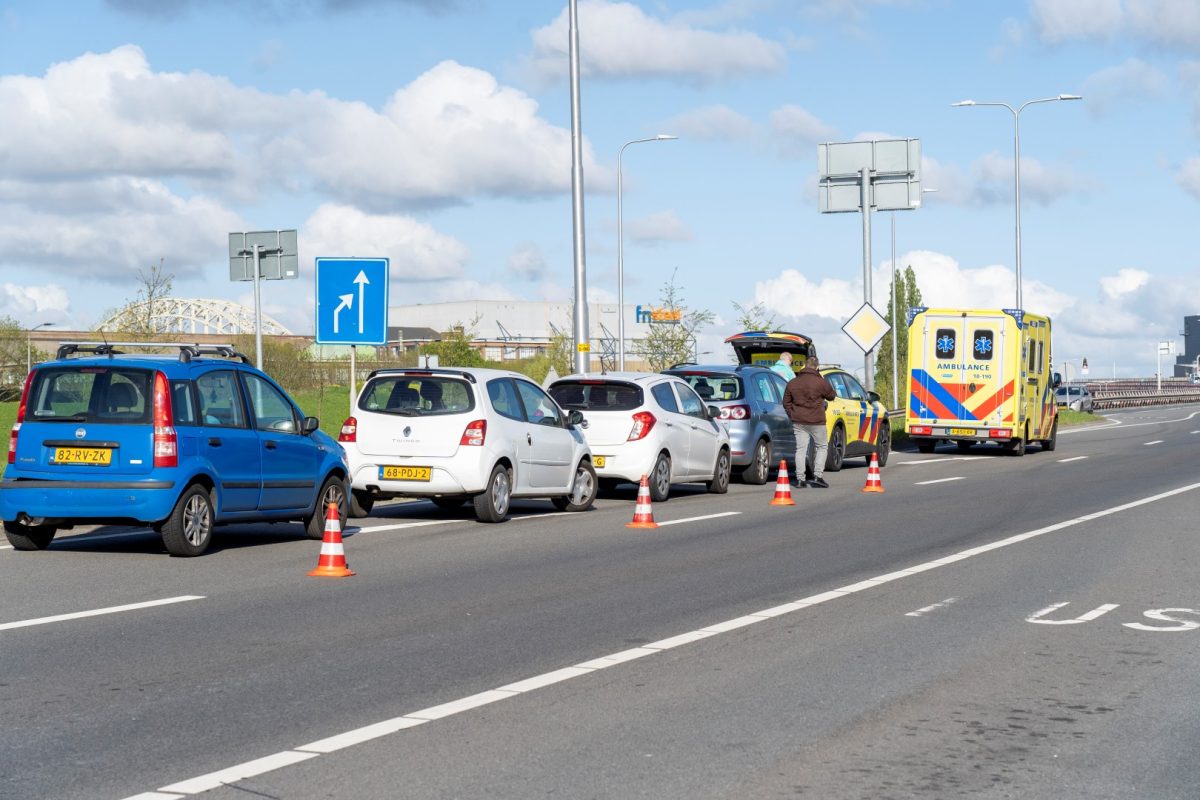 ALBLASSERDAM – Bij een botsing op de N915 bij Alblasserdam, ter hoogte van De Helling, is maandag 20 april 2026 één persoon gewond geraakt. Het ongeval gebeurde bij de oprit richting de Brug over de Noord, waar vier personenauto’s op elkaar botsten. De bijrijdster uit de één na achterste auto raakte gewond en is per ambulance naar het ziekenhuis vervoerd. Op dezelfde locatie had korte tijd eerder ook al een incident plaatsgevonden. “De deur van een bedrijfswagen zat niet dicht en was tegen een lijnbus aangekomen,” aldus een betrokkene. De schades wordt verder door de betrokken verzekeraars afgehandeld.