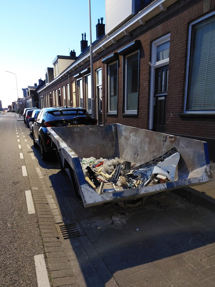 ALBLASSERDAM – Een automobilist is dinsdagavond 21 april 2026 rond 19.30 uur tegen een container gebotst in Alblasserdam. Dit gebeurde op de West-Kinderdijk, ter hoogte van de wegversmalling bij de oude Merconloods. Door de klap belandde een deel van de autodeur in de container. Drie auto’s raakten door de rondvliegende objecten licht beschadigd. Niemand raakte gewond. De auto is even verderop weggezet, zodat het overige verkeer weinig hinder ondervond van het ongeval. Buurtbewoners hebben met elkaar puin geruimd en alles aangeveegd. De politie is ter plaatse geweest en heeft afspraken met de bestuurder gemaakt over de afhandeling van de schade.