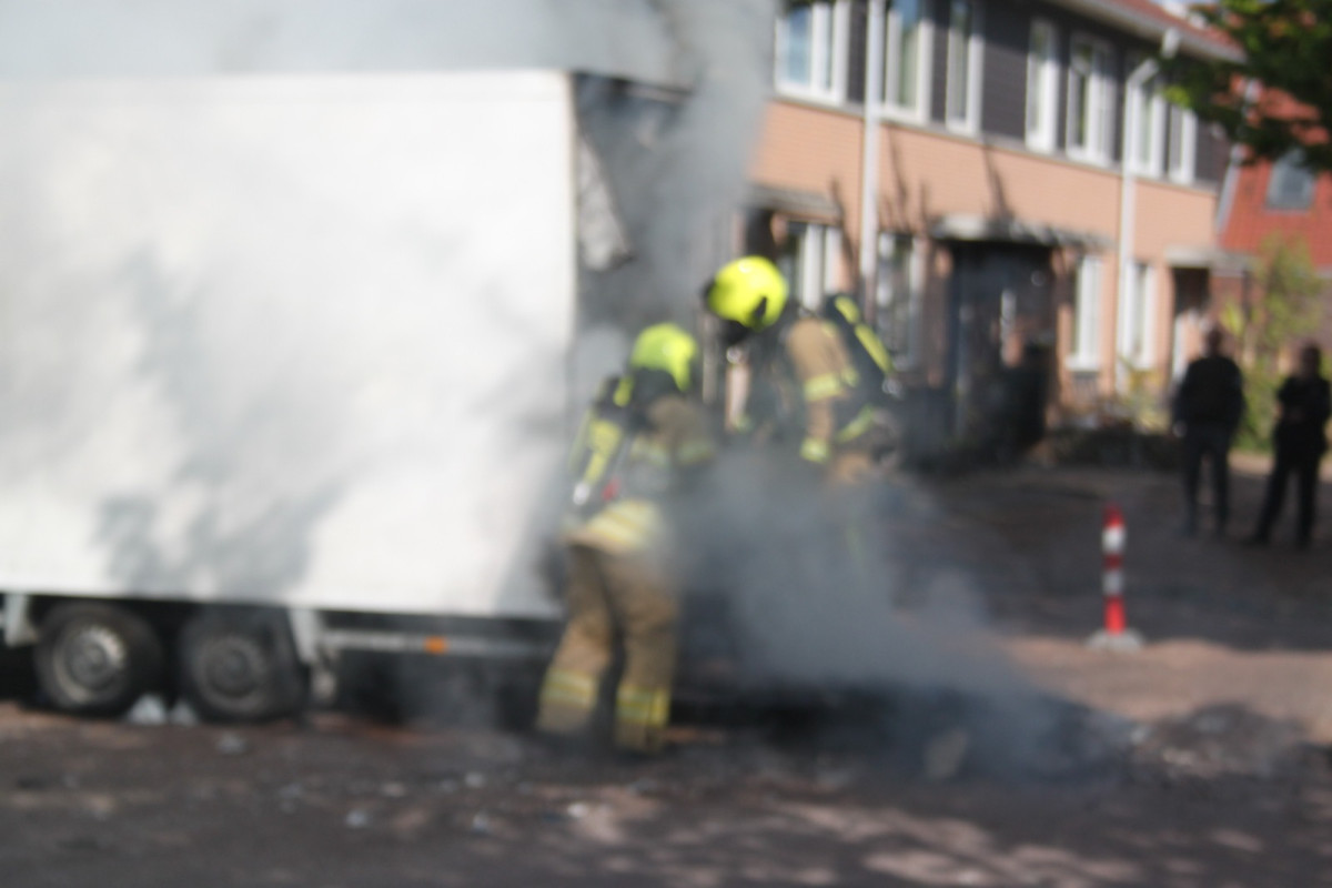 Bij de brand kwam veel rook vrij. Om goed te kunnen blussen, werd de aanhanger opengezaagd en deels leeggehaald zodat de brandhaarden bereikbaar waren.