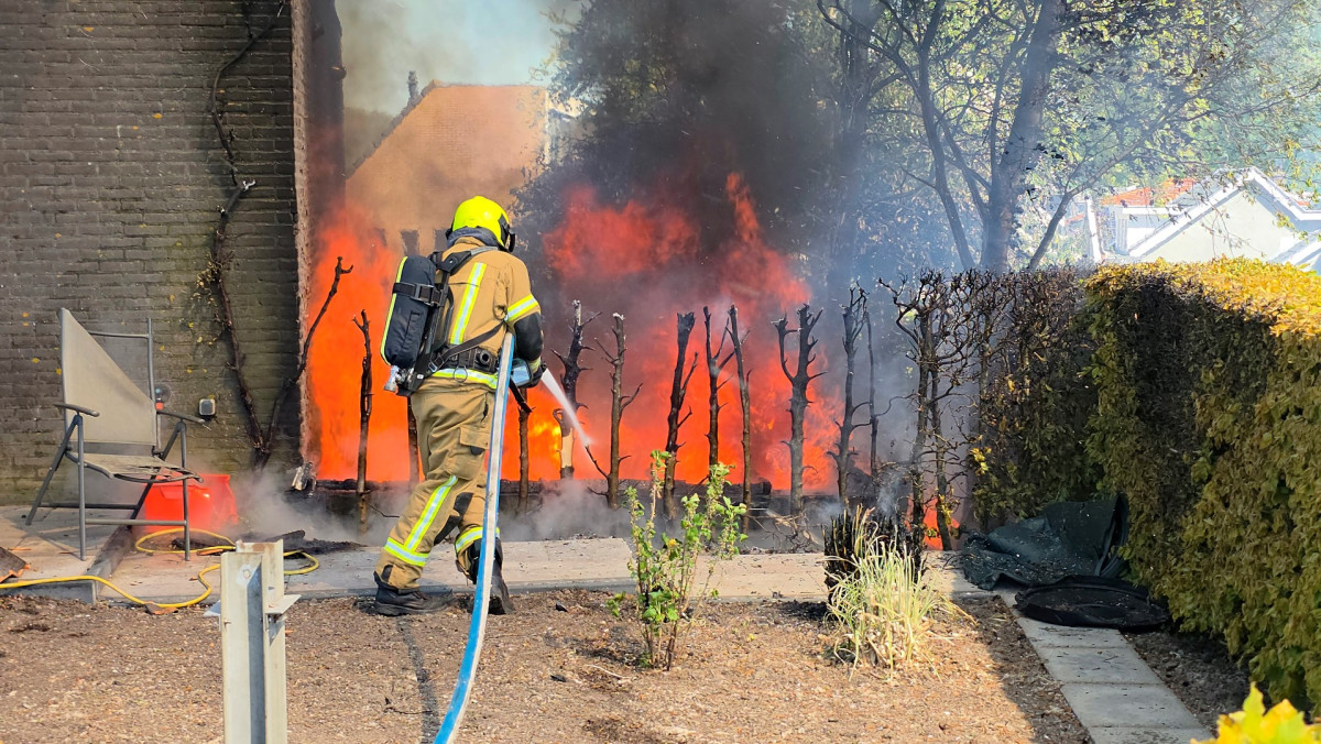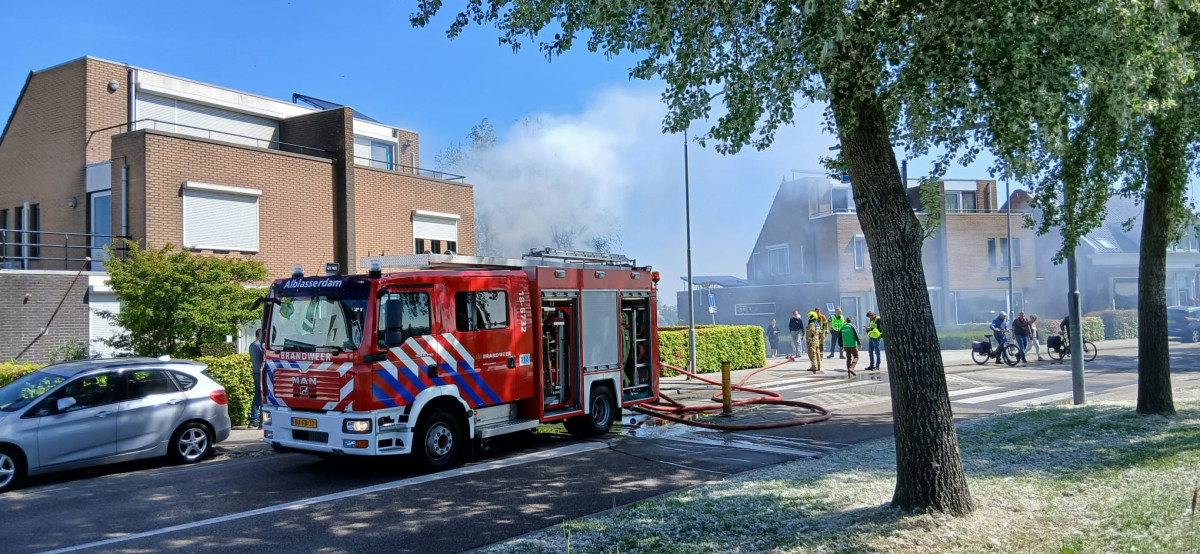 ALBLASSERDAM – Aan een woning langs de Oost-Kinderdijk in Alblasserdam, ter hoogte van de Pijlstoep, is zaterdagmiddag 25 april 2026 flinke schade ontstaan door brand. Een schuurtje dat tegen de woning aan stond, brandde tot de grond toe af.