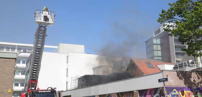 DORDRECHT – Bij werkzaamheden in een pand aan de Spuiweg in Dordrecht is brand uitgebroken. Daarbij kwamen dinsdagmiddag 28 april 2026 al snel grote rookwolken vrij. De brand sloeg over naar twee naastgelegen panden. De brandweer kwam met meerdere voertuigen ter plaatse en schaalde op naar ‘grote brand’. Onder meer gevelisolatie heeft bij zeker twee woningen in brand gestaan, dit zorgde voor zwarte rookwolken die in de omgeving te zien waren.